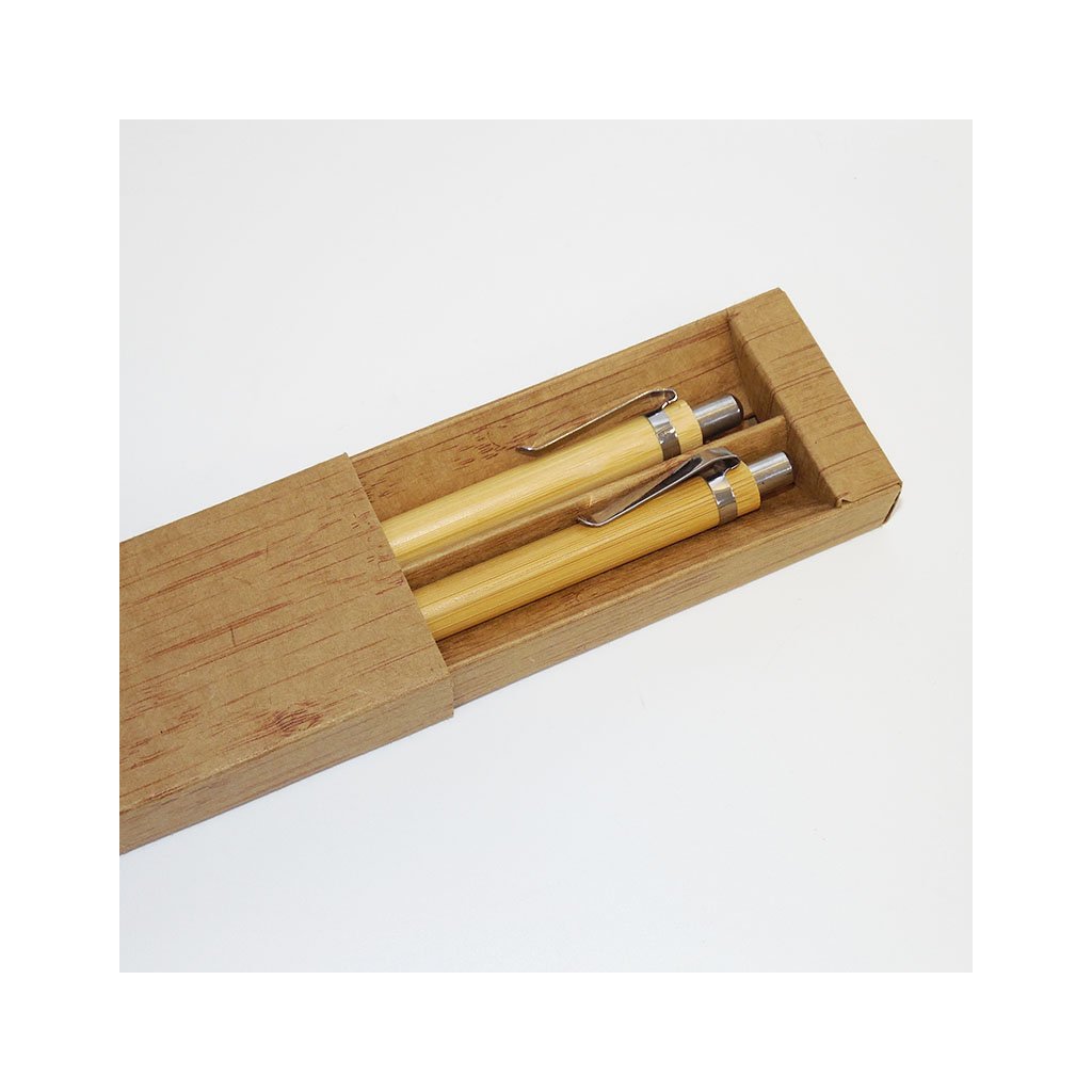 2x Bambusová propiska a mikrotužka s vlastním textem v papírovém dárkovém balení Originální personalizace na míru