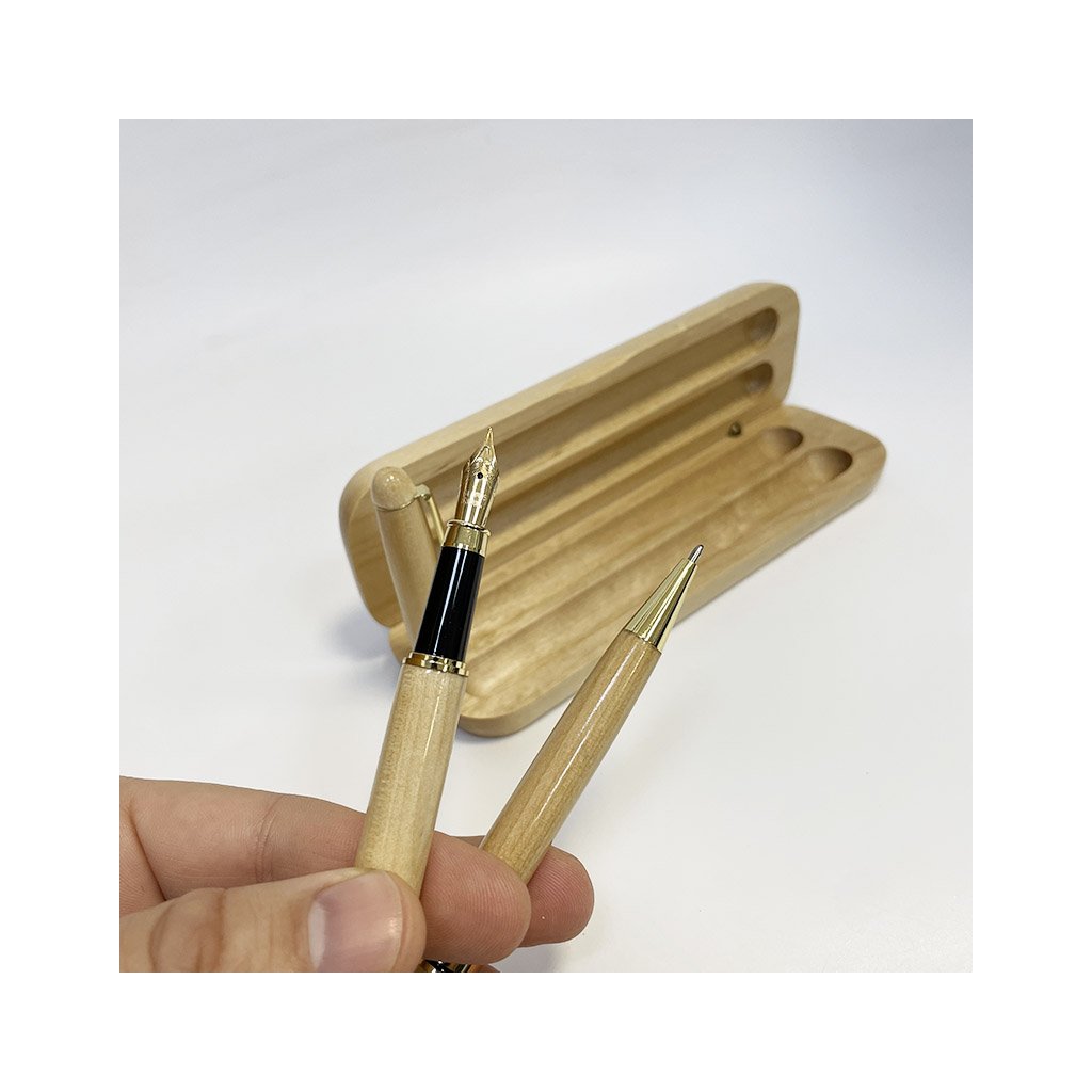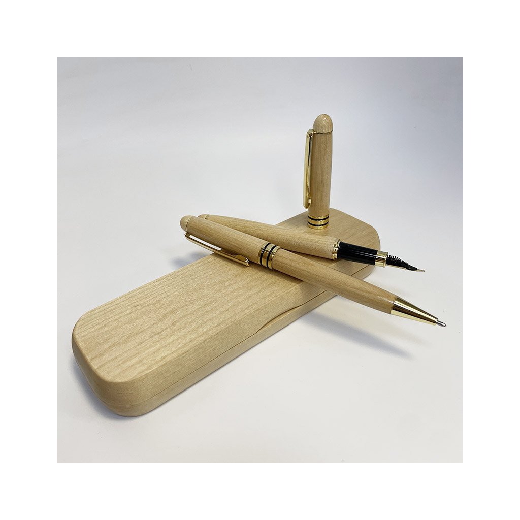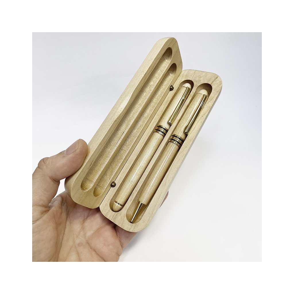 2x prémiové dřevěné inkoustové a kuličkové pero v dárkovém balení s monogramem a vlastním textem Originální personalizace na míru