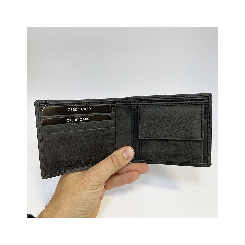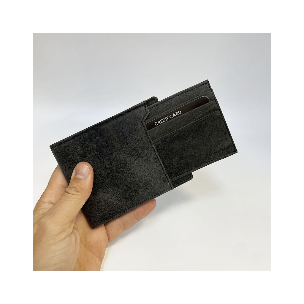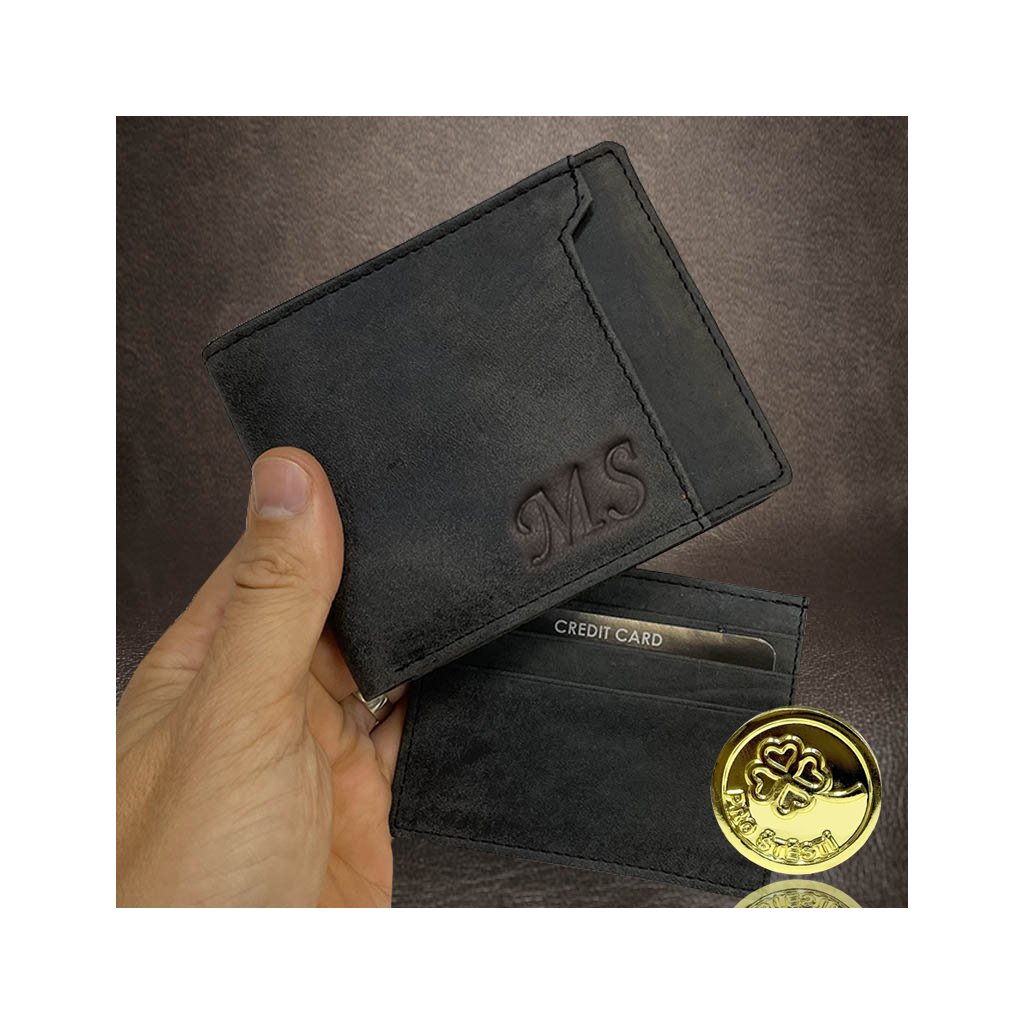 Černá SLIM 2v1 kožená peněženka BEORIGINAL Leather s monogramem (ražba) + Akce - zlatá mince Pro štěstí ZDARMA
