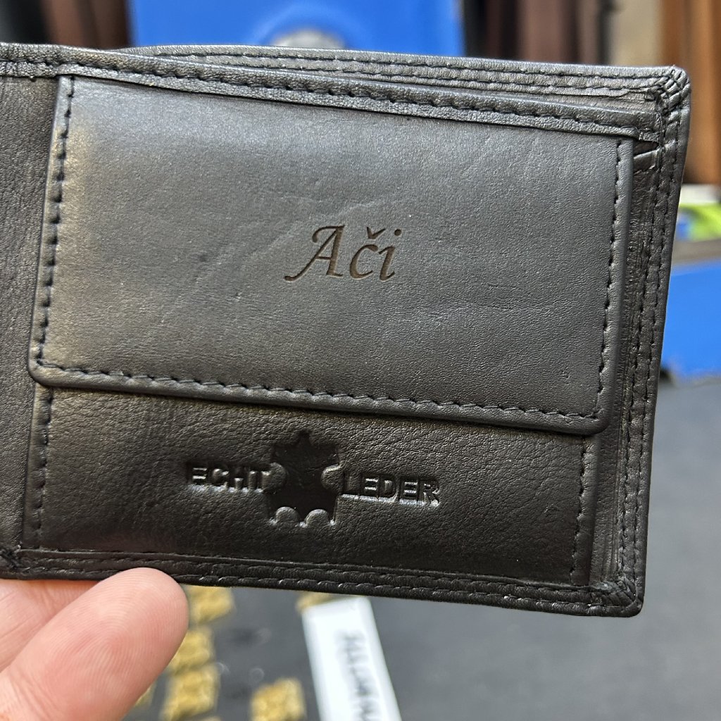 Text uvnitř, který zůstane jen vámChcete dar posunout ještě dál? Uvnitř peněženky můžeme laserem vypálit krátké věnování, datum nebo třeba tajné motto. Skrytý vzkaz, který uvidí jen majitel, dodá peněžence emocionální hodnotu a promění ji v osobní vzpomínku, která nezestárne. |