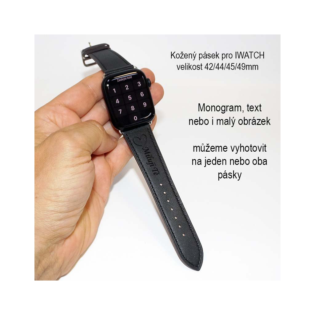 Černý kožený řemínek pásek pro Apple IWATCH BE ORIGINAL s vlastním monogramem, textem nebo obrázkem + prémiové dárkové balení BE Original