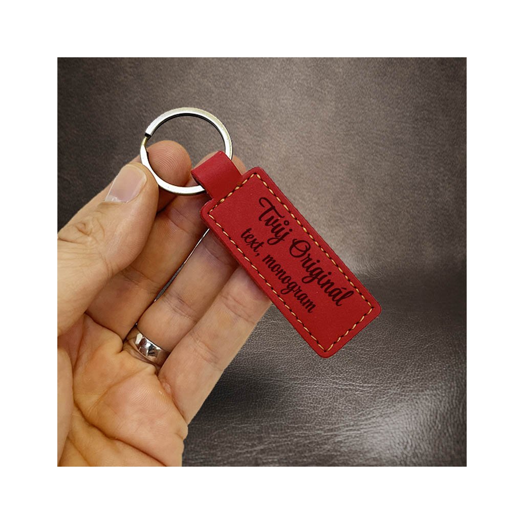 Červená kožená klíčenka BEORIGINAL Leather s vlastním textem Možnost gravírování z obou stran