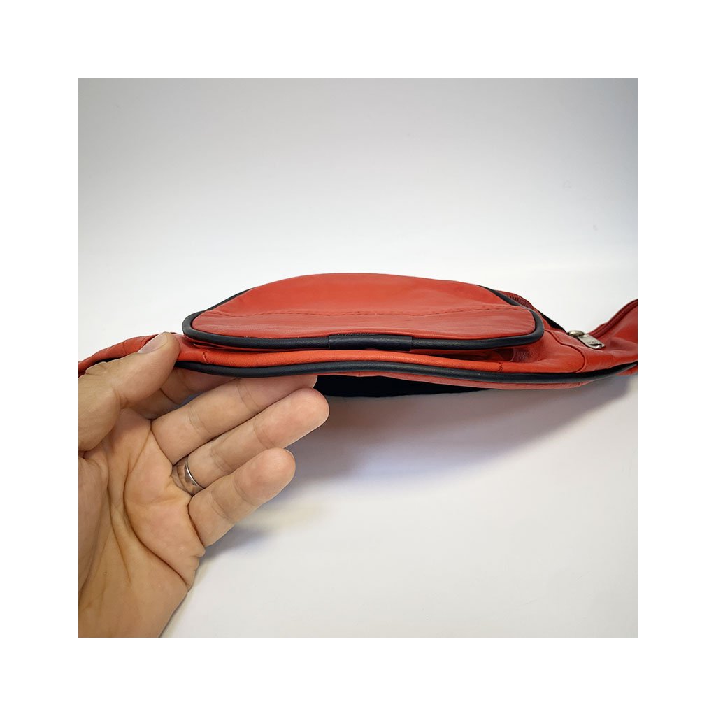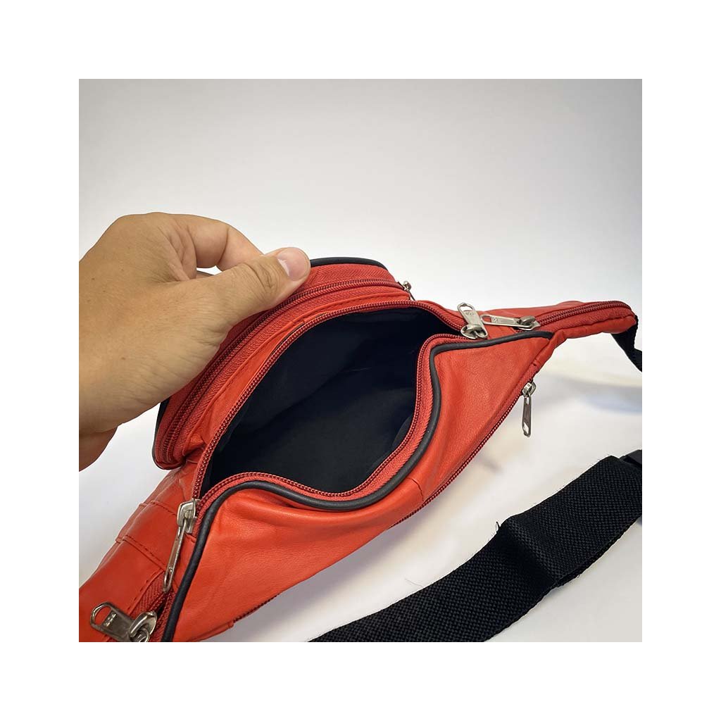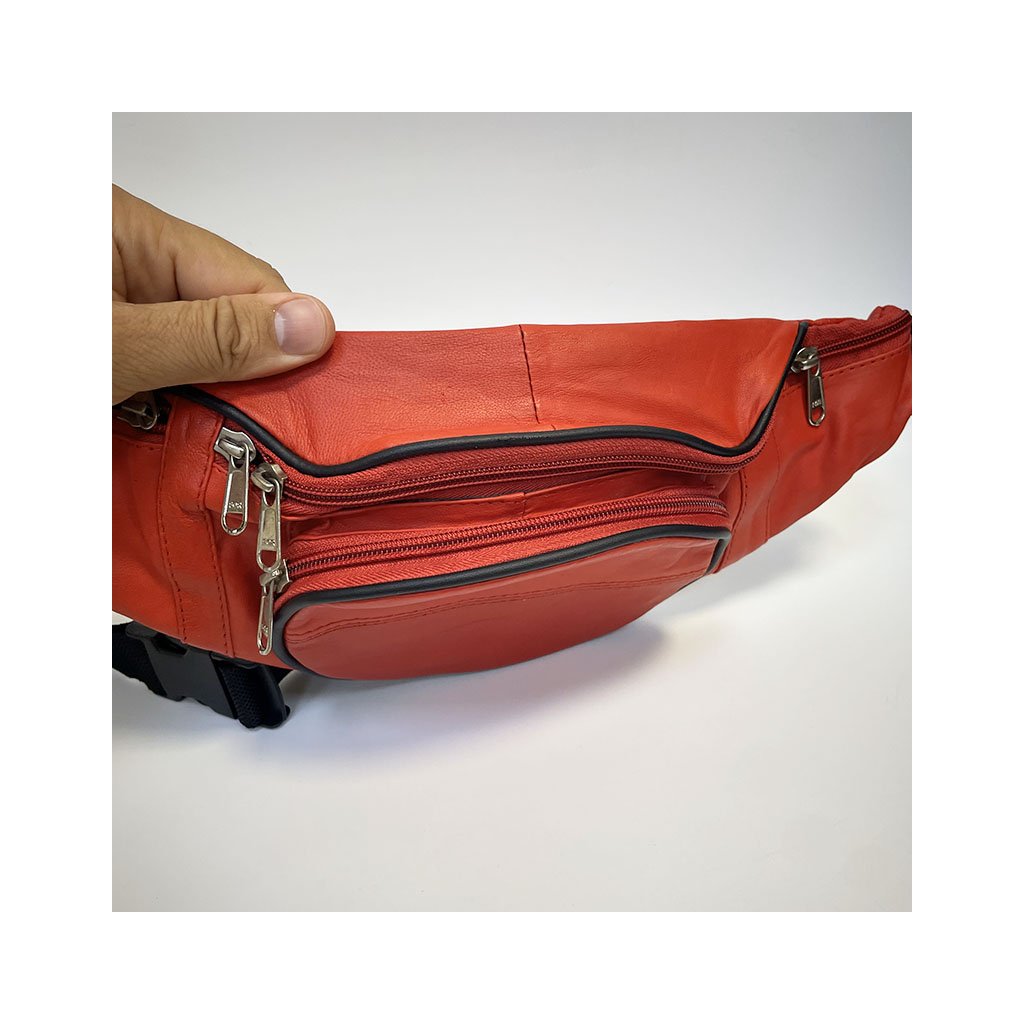 Červená kožená ledvinka, klasická se spoustou kapes | velikost M středně velká Bez personalizace - individuální přání řešíme po domluvě.