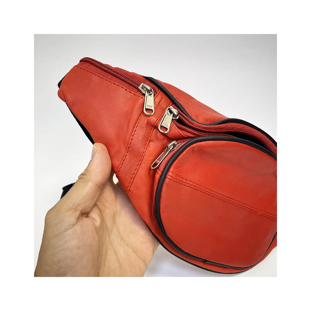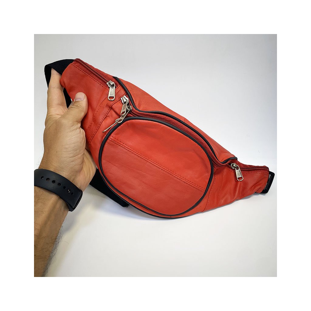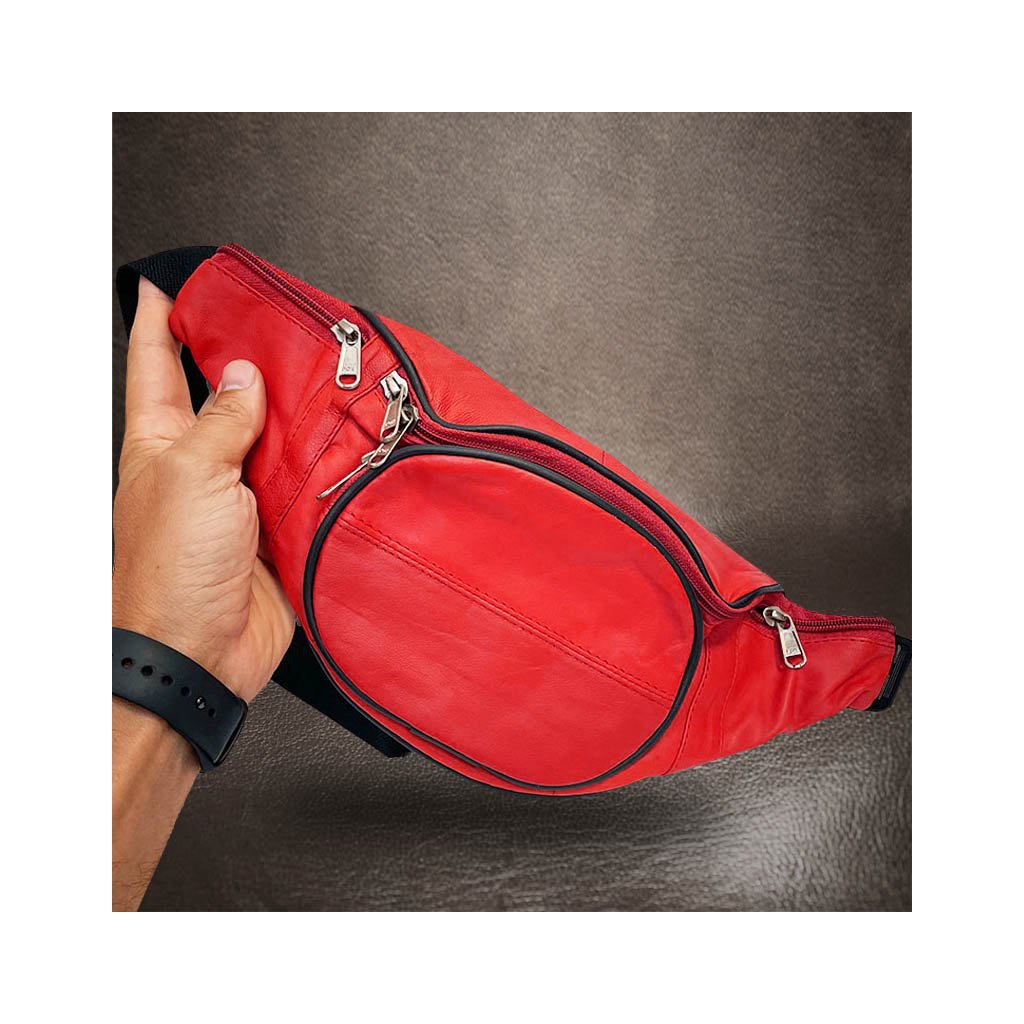 Červená kožená ledvinka, klasická se spoustou kapes | velikost M středně velká Bez personalizace - individuální přání řešíme po domluvě.