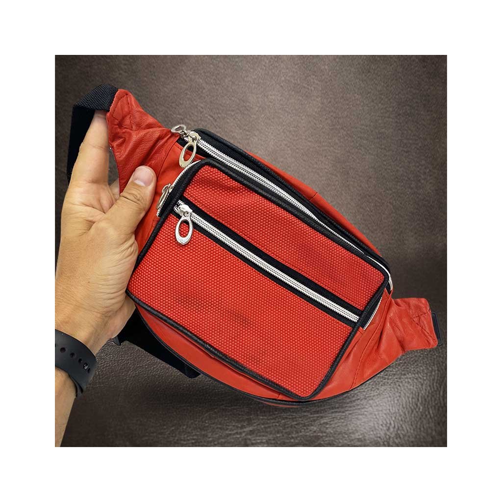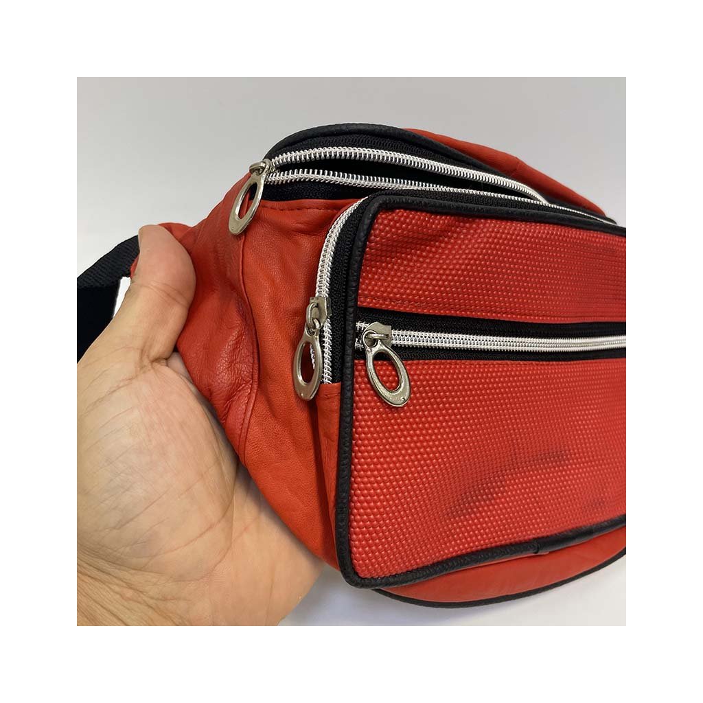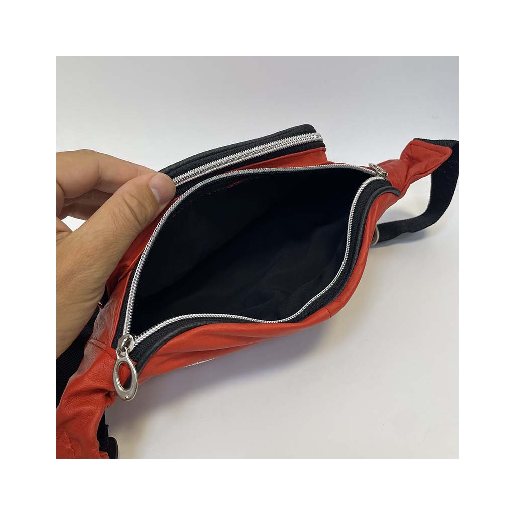 Červená kožená ledvinka, moderní se spoustou kapes | velikost M středně velká Bez personalizace - individuální přání řešíme po domluvě.