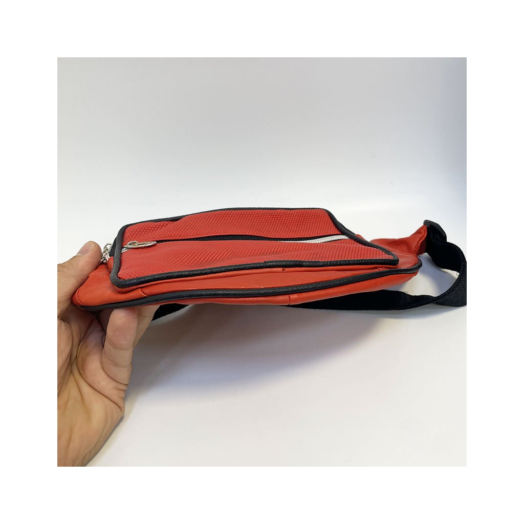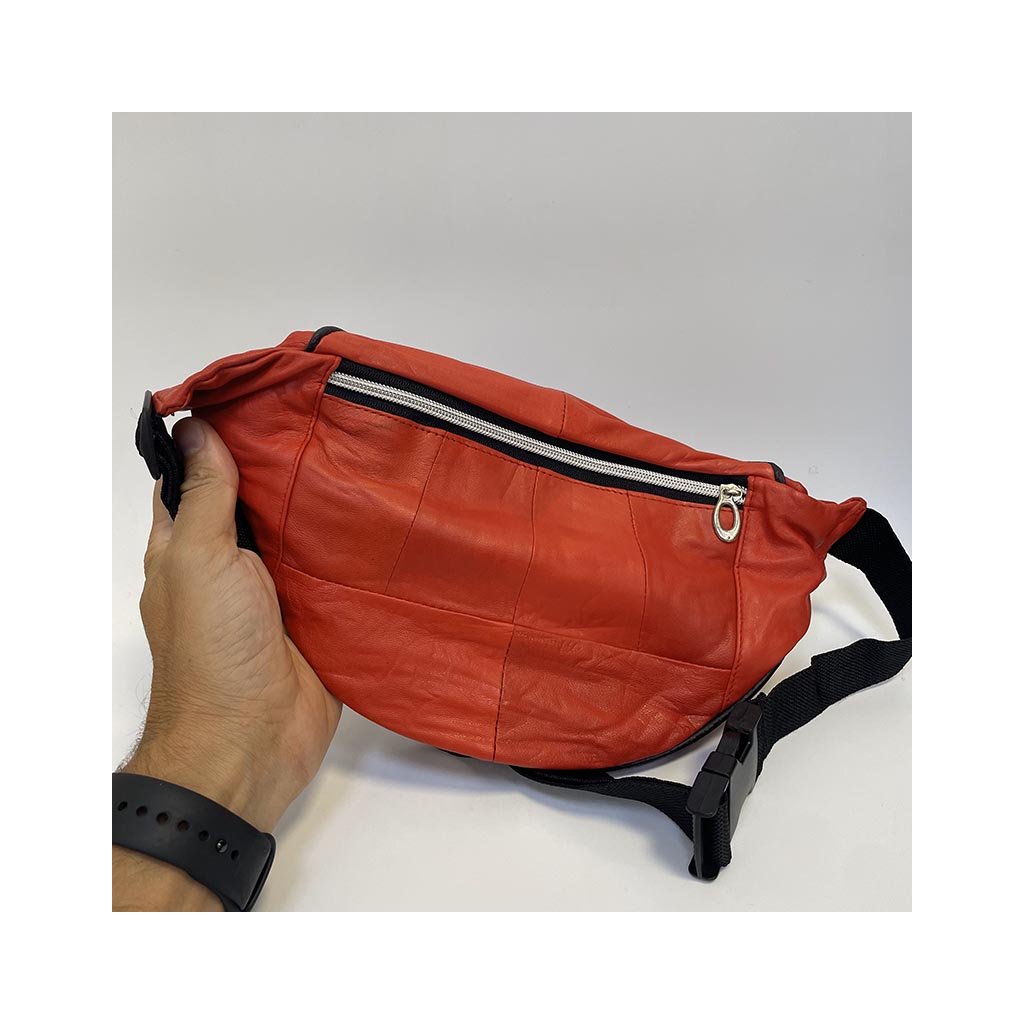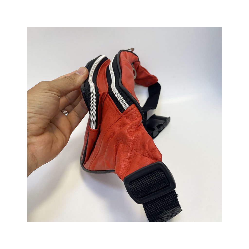 Červená kožená ledvinka, moderní se spoustou kapes | velikost M středně velká Bez personalizace - individuální přání řešíme po domluvě.