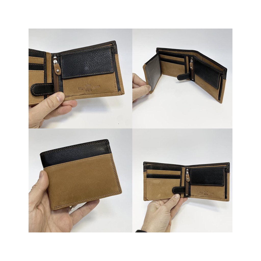 Peněženka je vyrobena z prémiové hovězí kůže v elegantním černo-hnědém provedení, která vyniká jemnou strukturou, sametovým povrchem a dlouhou životností.