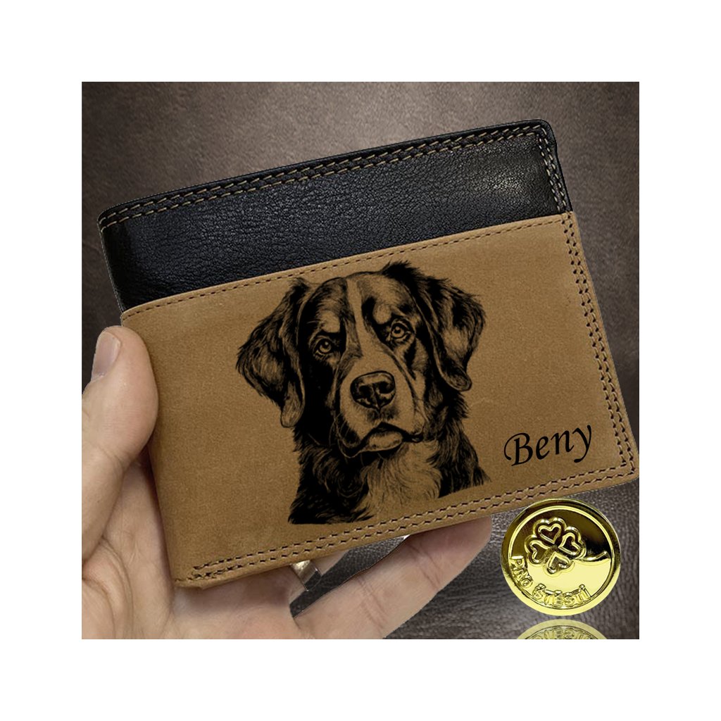 COMBO s fotkou jakéhokoliv psa a textem - Pánská prémiová kožená peněženka ROYAL Leather RFID + Akce - zlatá mince Pro štěstí ZDARMA
