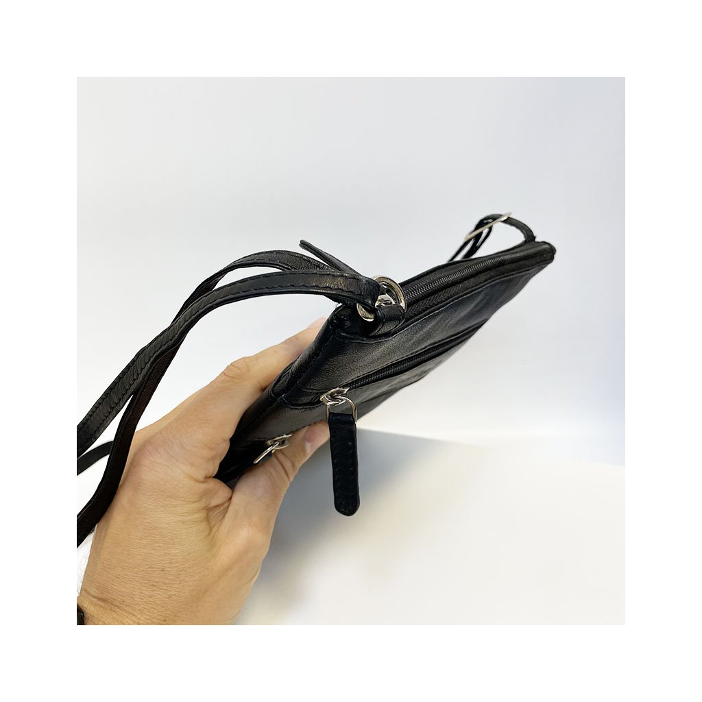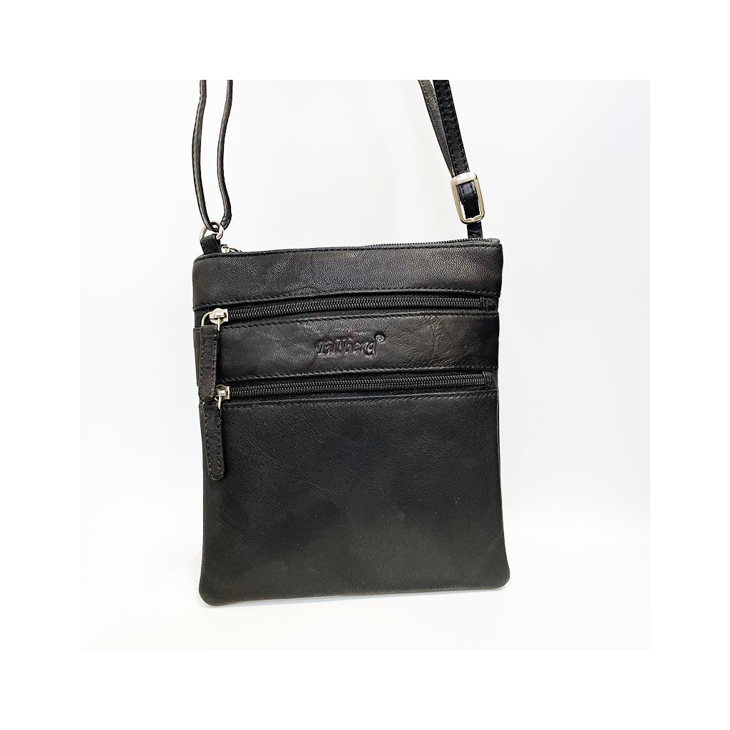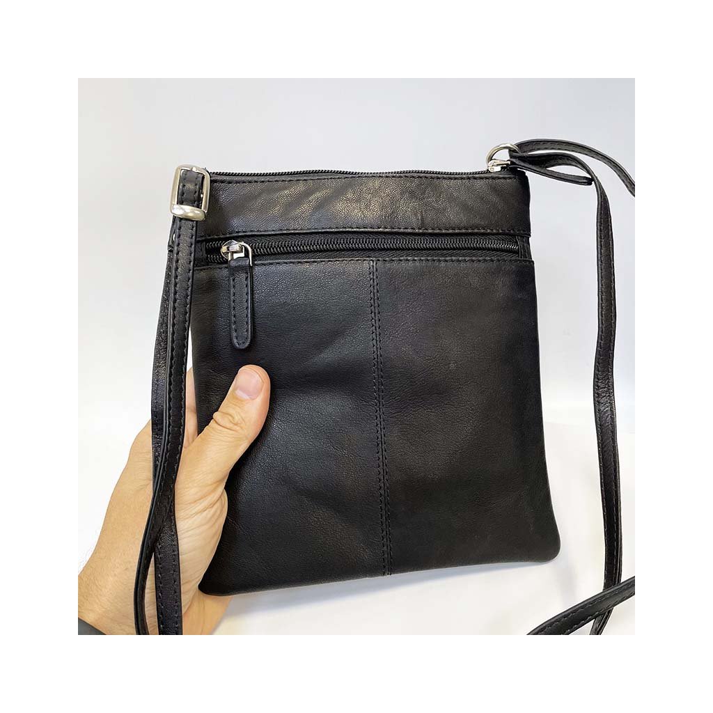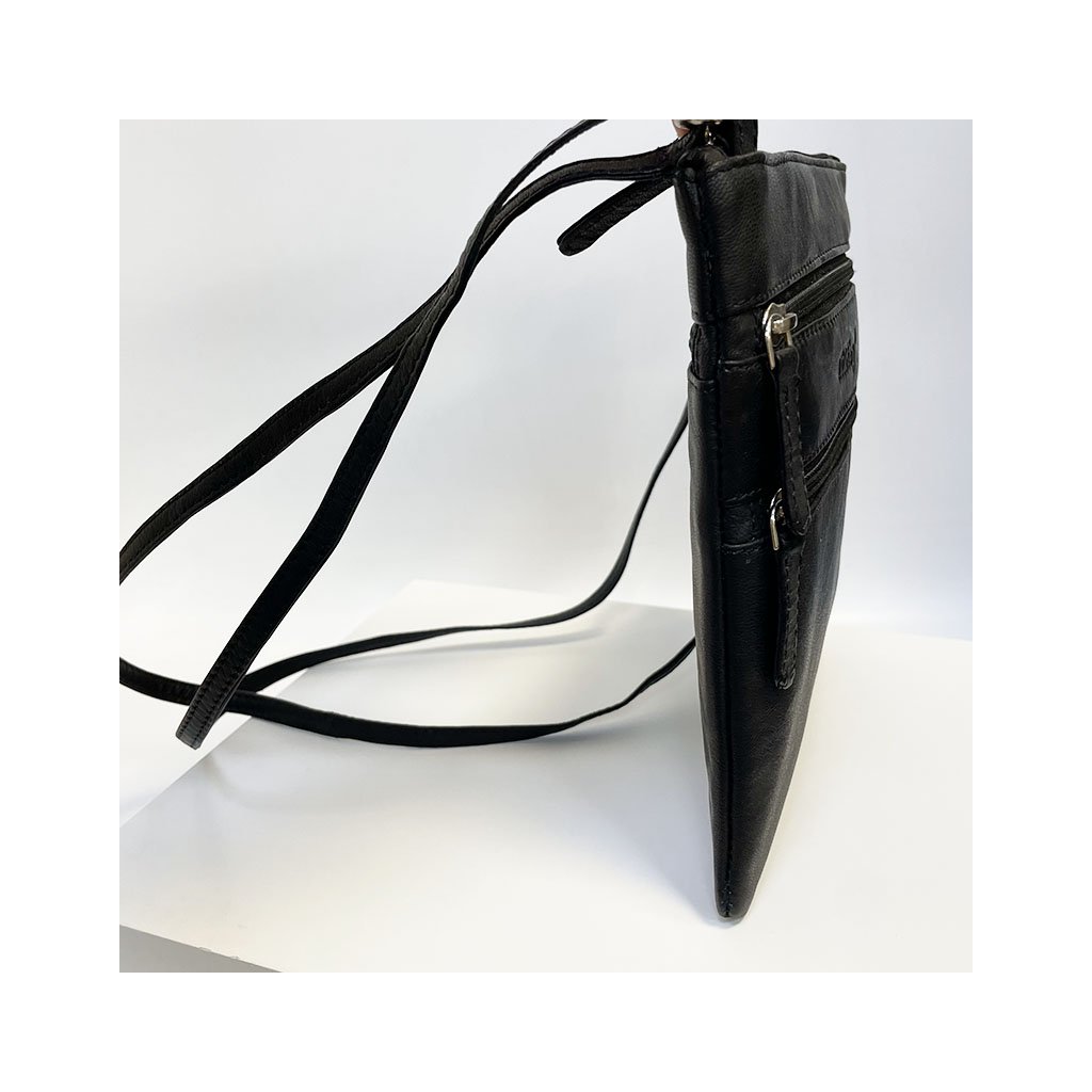 Crossbody kožená messenger taška je v klasickém černém odstínu. Přední a zadní kapsy na zip. Celá taška má hlavní kapsu na zip, je menších rozměrů, ideální na cestování, kdy do ní dáte s přehledem vše nezbytné. Součástí je nastavitelný popruh.