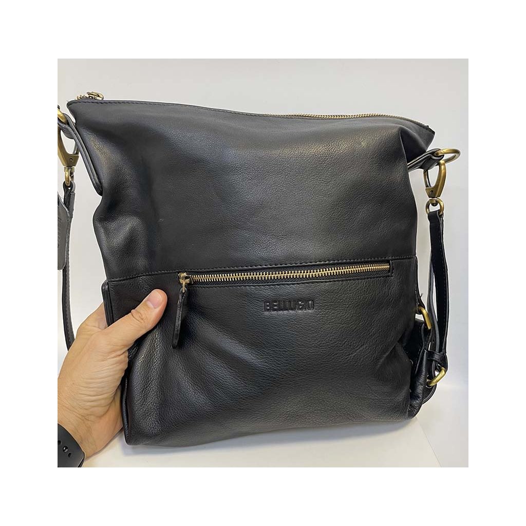 Dámská černá kožená kabelka přes rameno BELLUGIO Leather | velikost L velká Bez personalizace - individuální přání řešíme po domluvě.