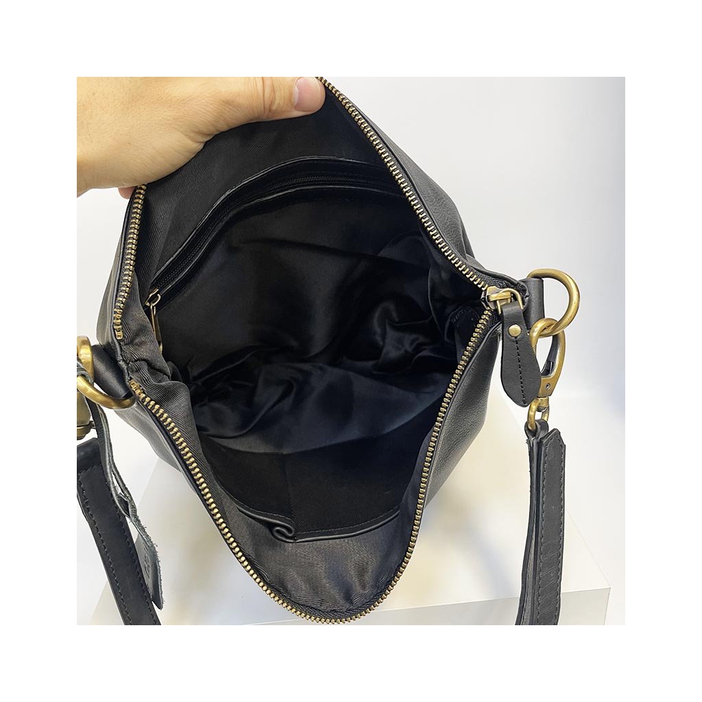 Poctivá kožená kabelka je v klasickém černém odstínu. Přední a zadní kapsa na zip. Celá taška má hlavní kapsu na zip, je větších rozměrů, ideální na každodenní používání. Do této kožené kabelky dáte opravdu spousty potřebných věcí a taška bude stále působit dokonale a nepřeplácaně, díky modernímu tvaru.