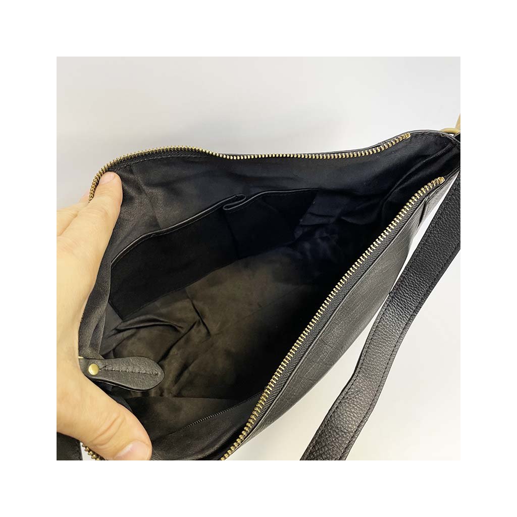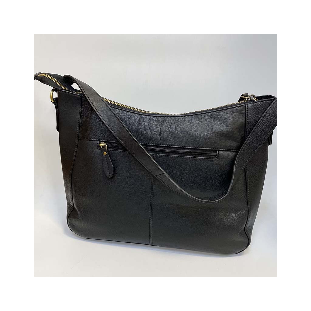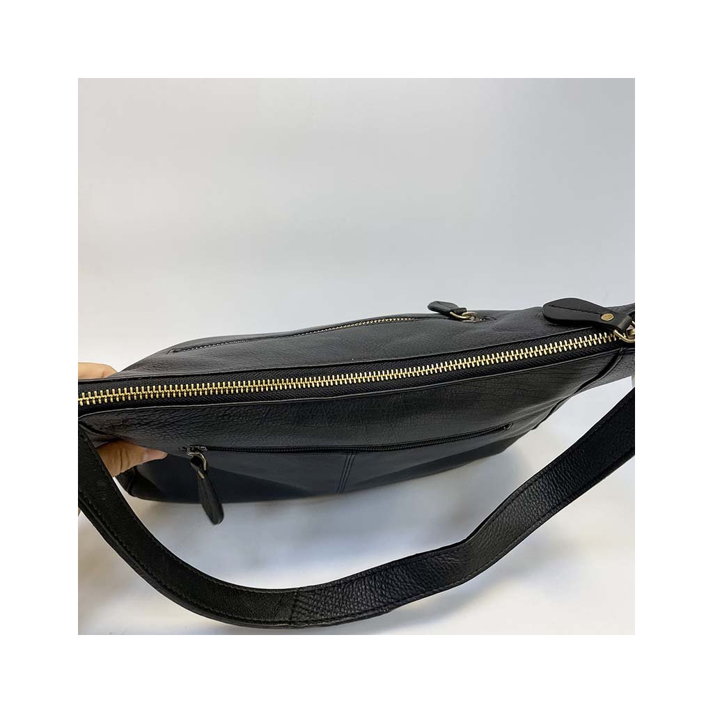 Poctivá kožená kabelka je v klasickém černém odstínu. Přední a zadní kapsa na zip. Celá taška má hlavní kapsu na zip, je větších rozměrů, ideální na každodenní používání. Do této kožené kabelky dáte opravdu spousty potřebných věcí a taška bude stále působit dokonale a nepřeplácaně, díky modernímu tvaru.