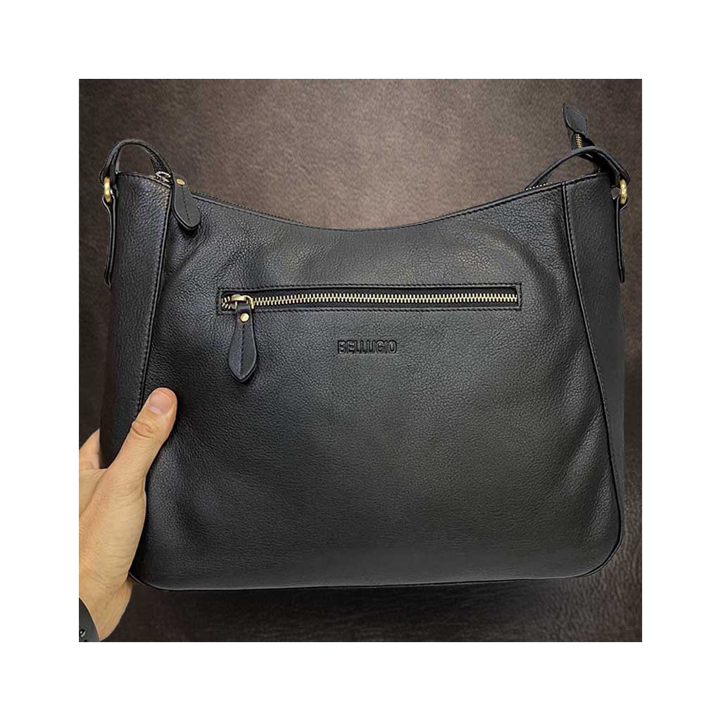 Dámská černá kožená kabelka přes rameno BELLUGIO Leather | velikost XL extra velká Bez personalizace - individuální přání řešíme po domluvě.