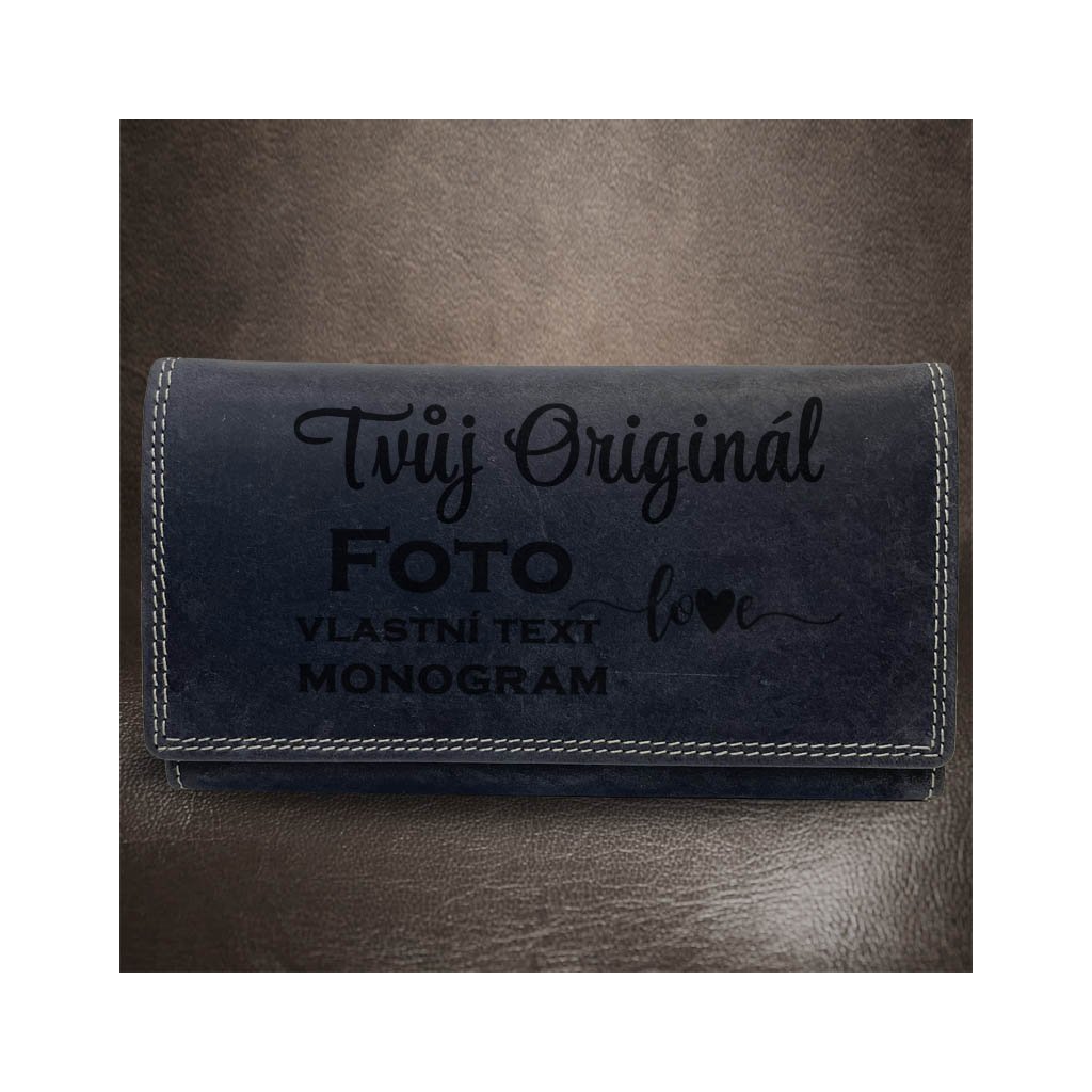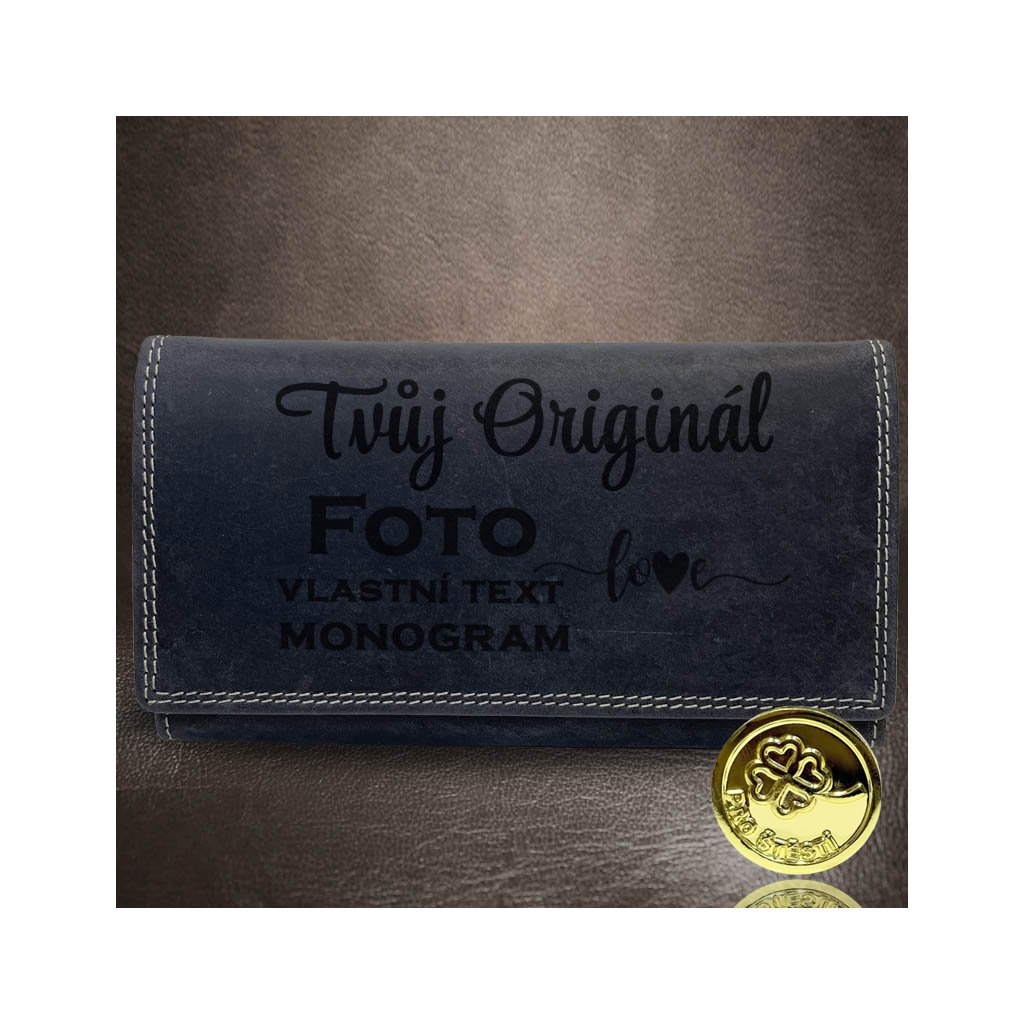 Dámská černá kožená peněženka TILLBERG s monogramem a vlastním textem + Akce - zlatá mince Pro štěstí ZDARMA