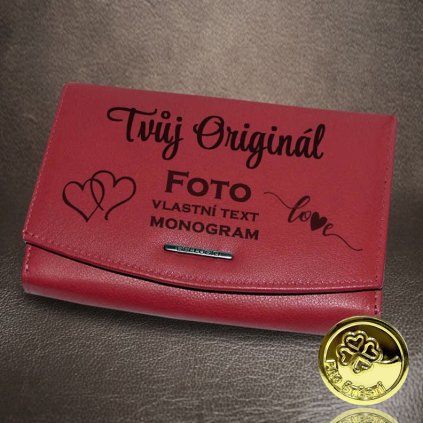 Červená kožená peněženka BELLUGIO s možností gravírování monogramu, věnování nebo vaší fotografie. Osobní dárek, který zaujme.