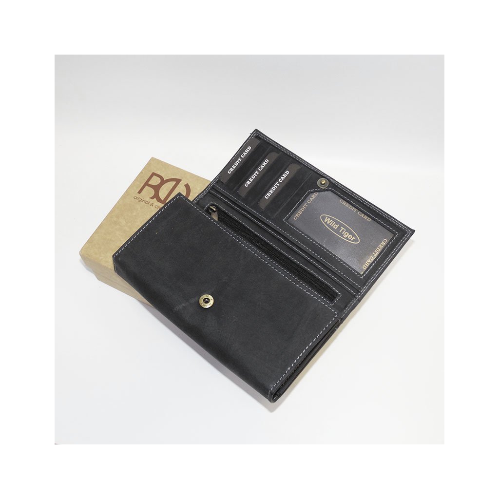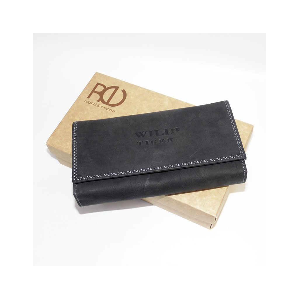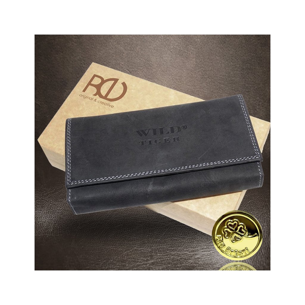 Dámská černá kožená peněženka WILD Leather s monogramem (ražba) + Akce - zlatá mince Pro štěstí ZDARMA