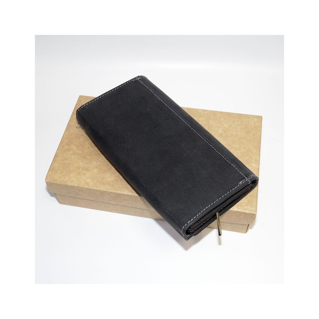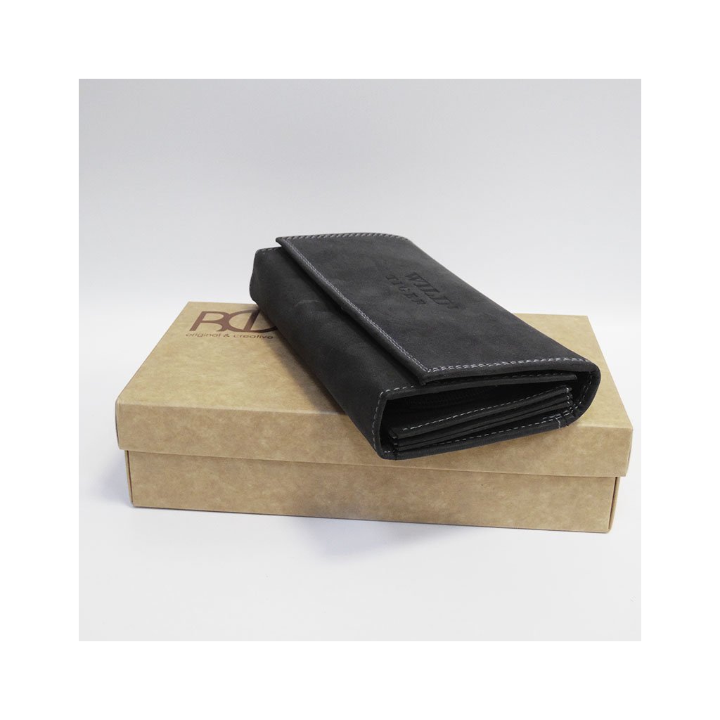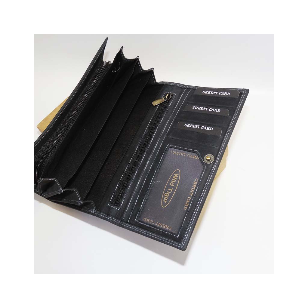 Dámská černá kožená peněženka WILD Leather s monogramem (ražba) + Akce - zlatá mince Pro štěstí ZDARMA