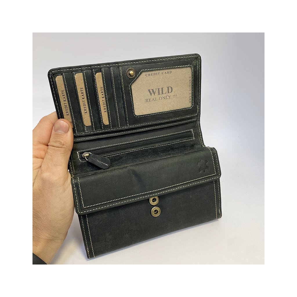 Dámská černá kožená peněženka WILD LEATHER s monogramem
