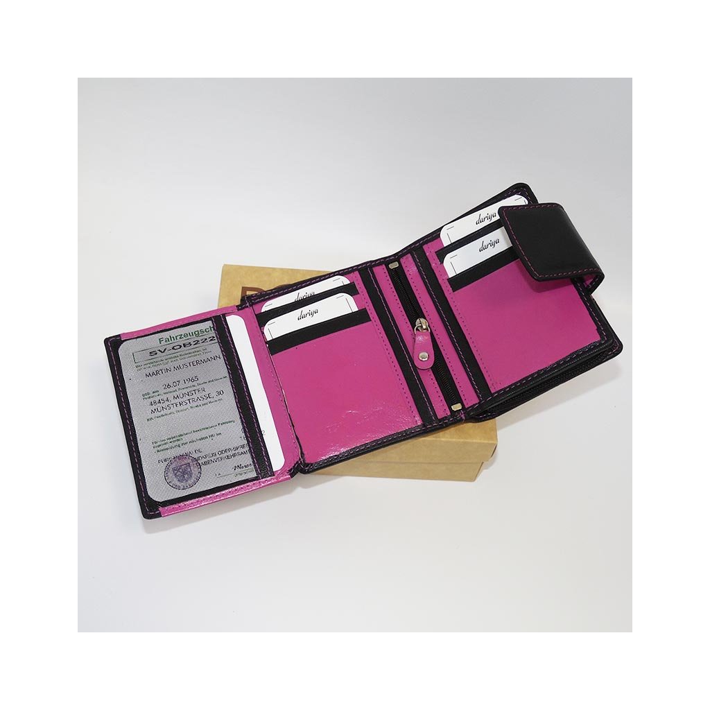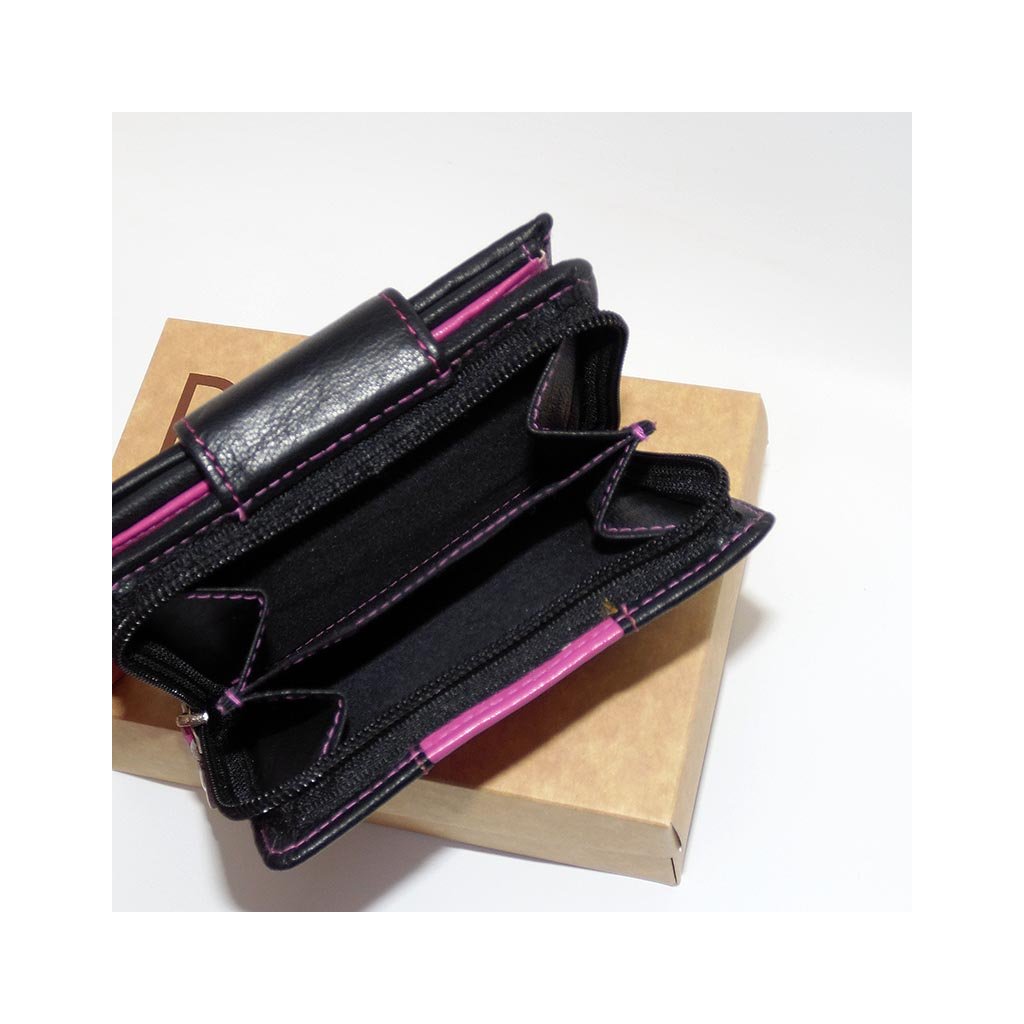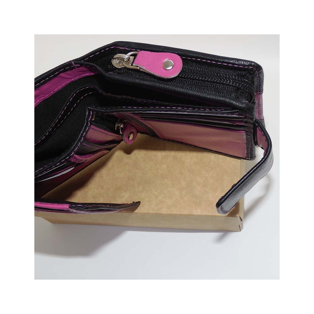 Elegantní dámská peněženka z pravé kůže v atraktivní kombinaci černé a růžové barvy. Kvalitní zpracování a praktické vnitřní členění z ní dělají ideální každodenní doplněk. Možnost doplnění vlastního monogramu promění tento kousek v osobní a jedinečný dárek.