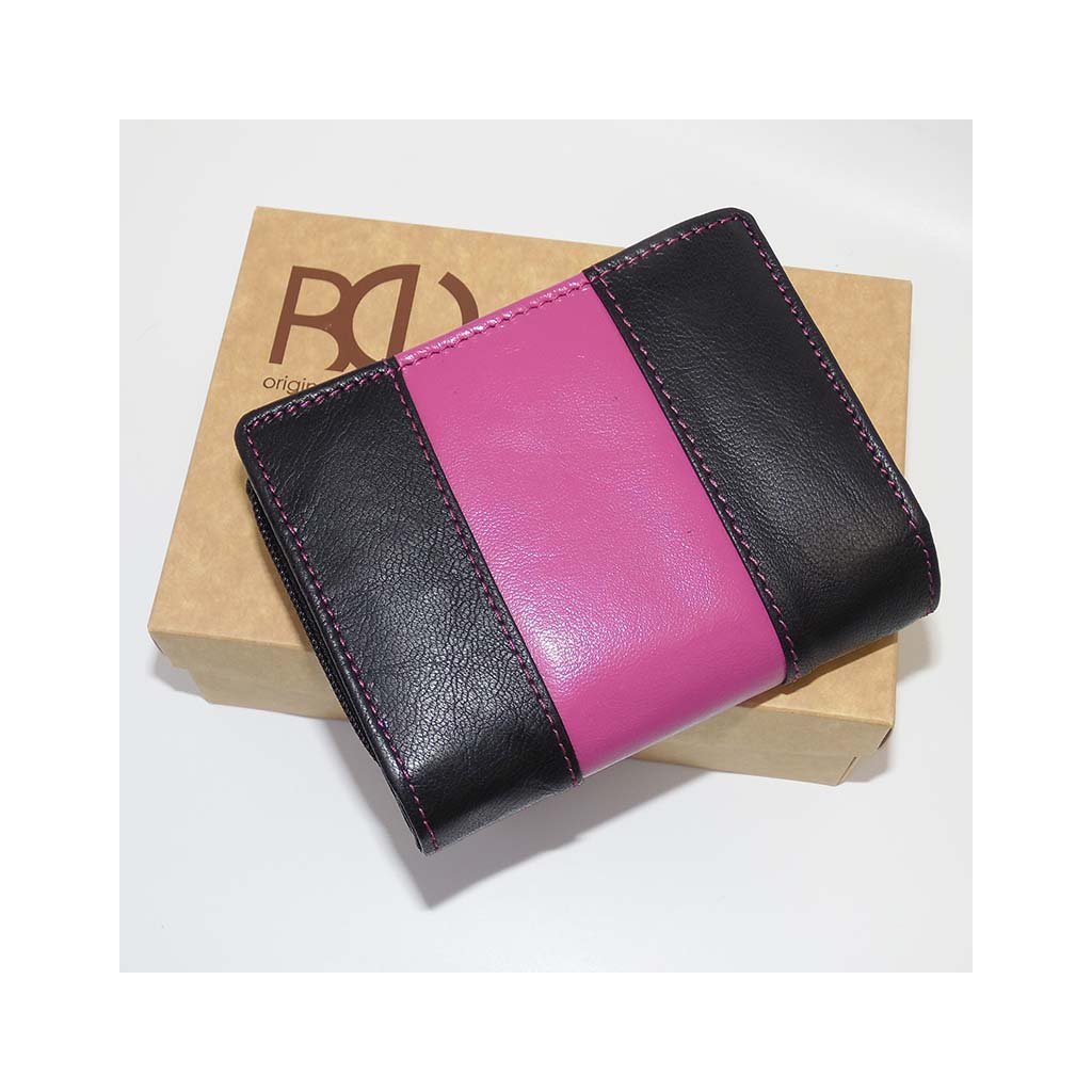Dámská černo-růžová kožená peněženka BEORIGINAL Leather s monogramem