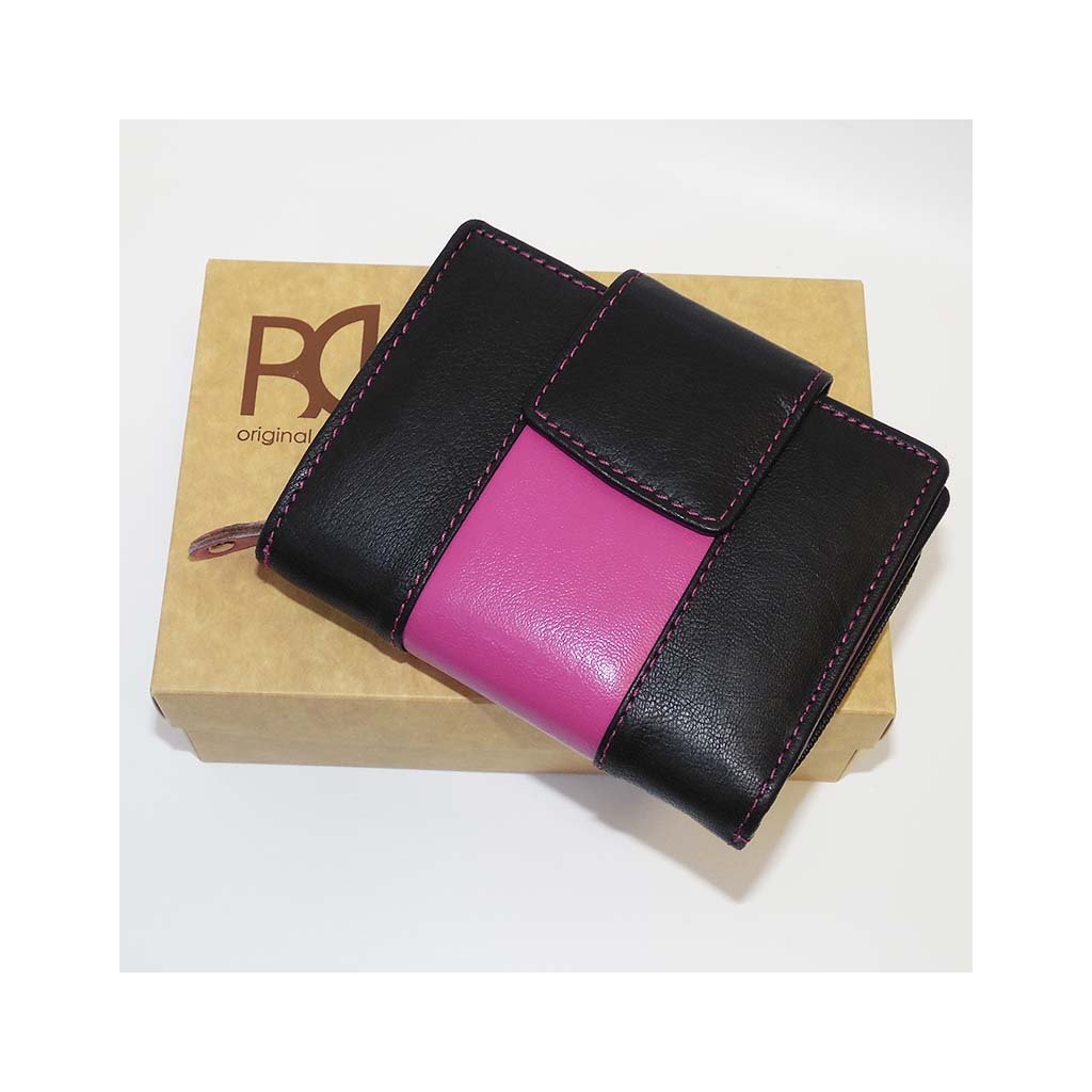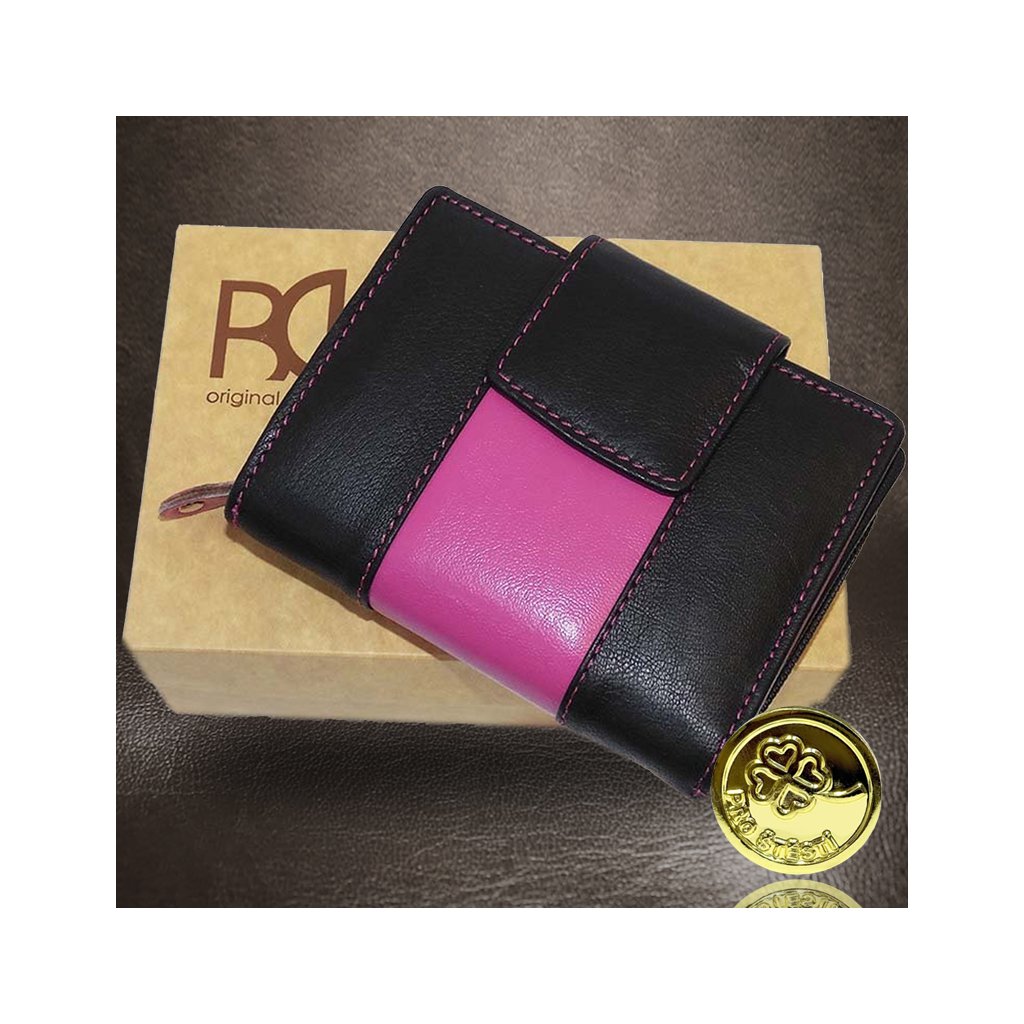 Dámská černá růžová kožená peněženka BEORIGINAL Leather s monogramem + Akce - zlatá mince Pro štěstí ZDARMA