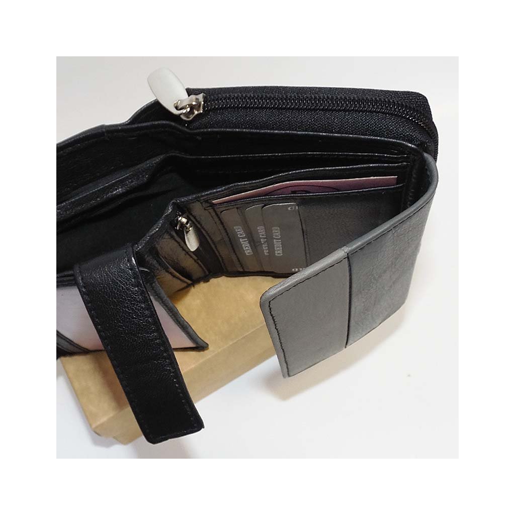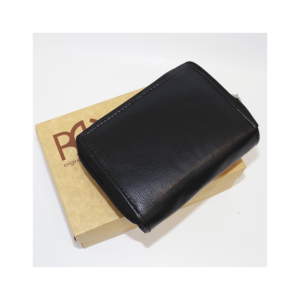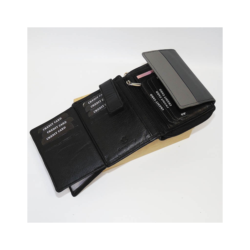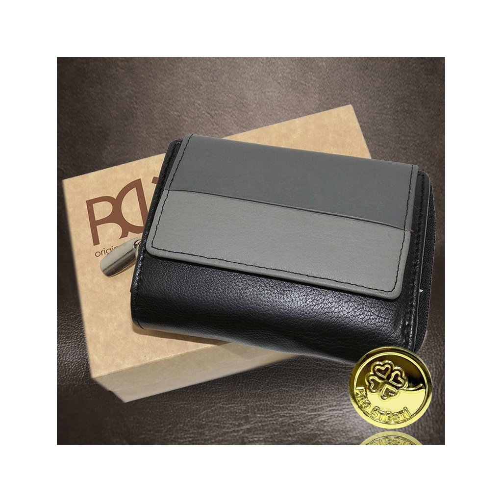 Dámská černá šedá kožená peněženka BEORIGINAL Leather s monogramem + Akce - zlatá mince Pro štěstí ZDARMA