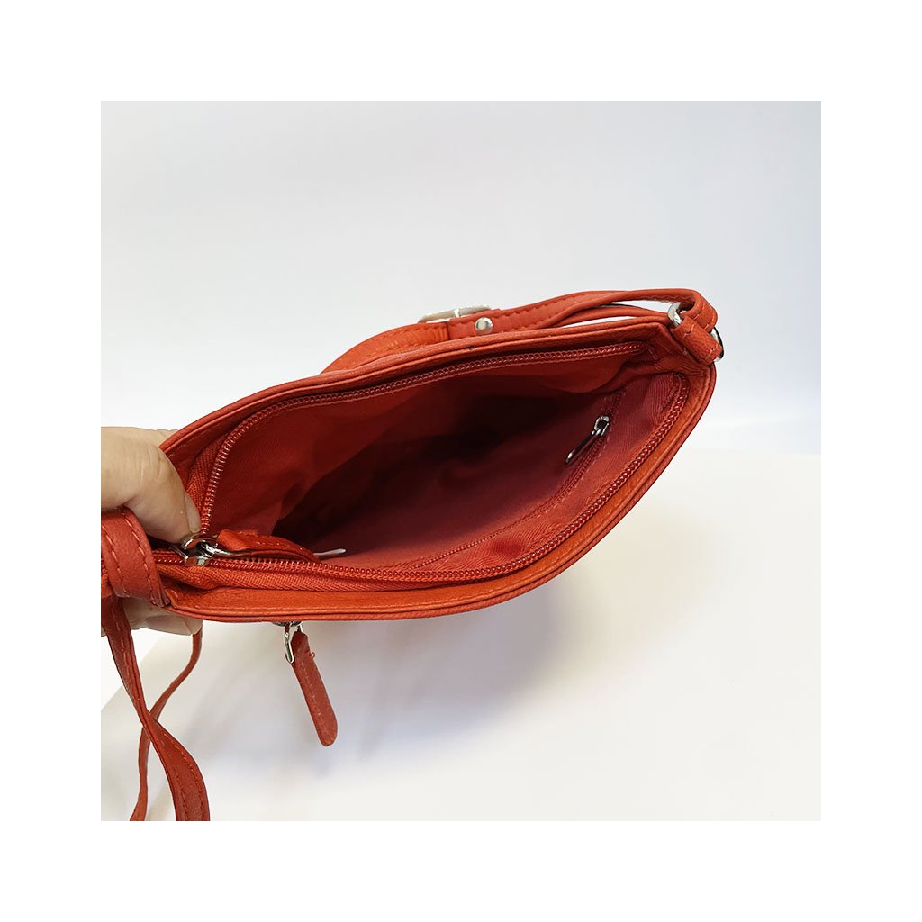 Crossbody kožená messenger taška je v klasickém červeném odstínu. Má přední kapsa, která není zapínací, poté zadní, tu již zapnete na zip. Celá taška má hlavní kapsu na zip, je menších rozměrů, ideální na cestování, kdy do ní dáte s přehledem vše nezbytné. Součástí je nastavitelný popruh.
