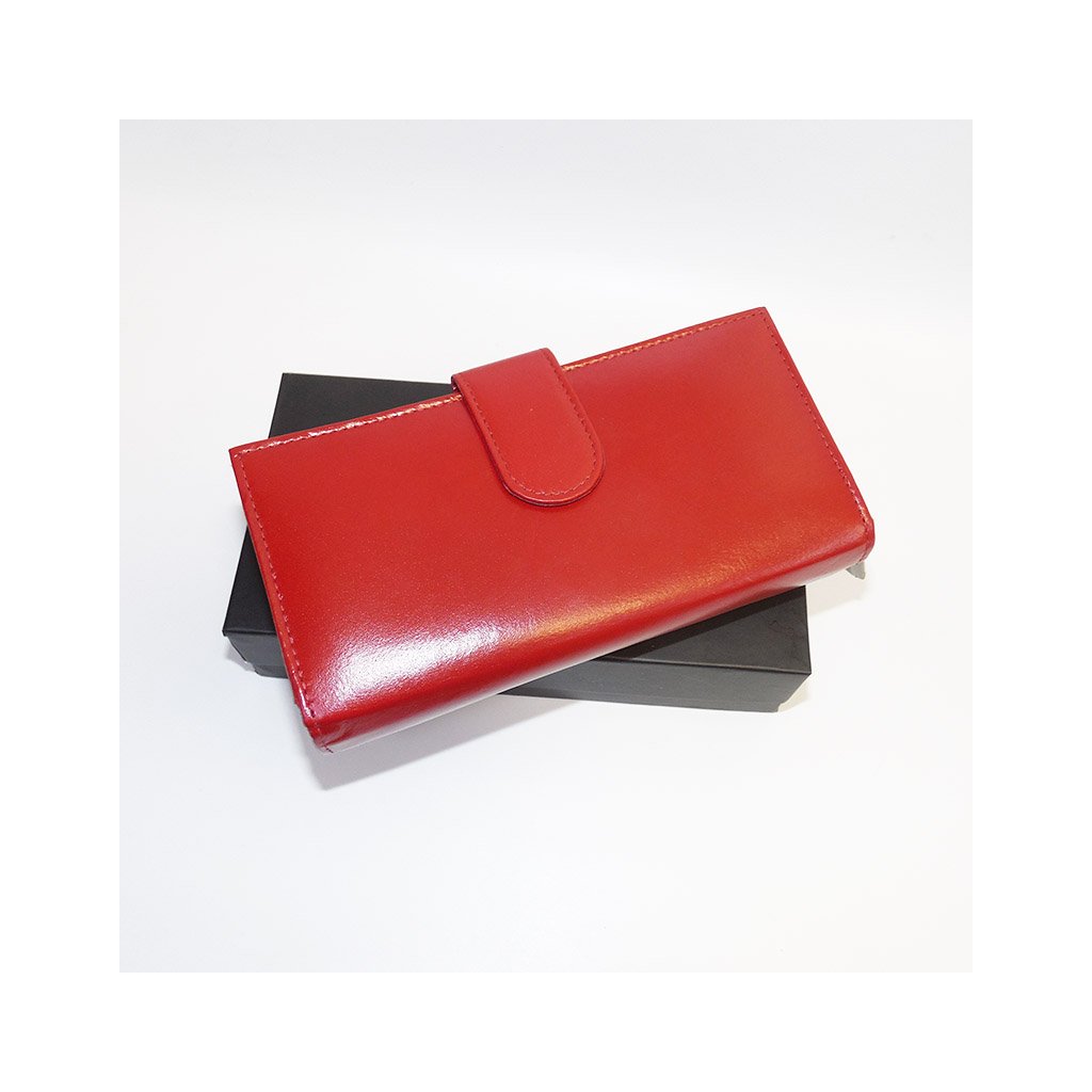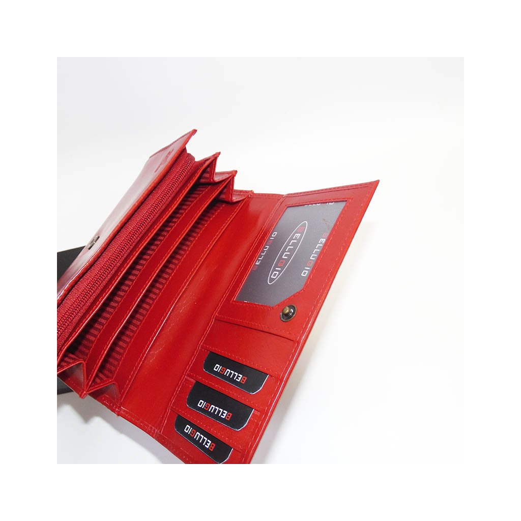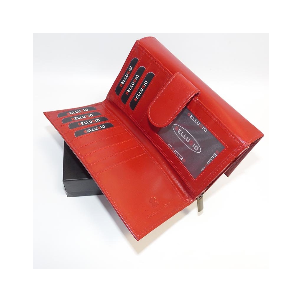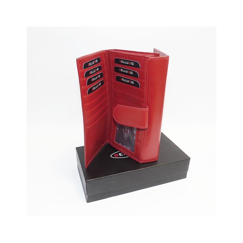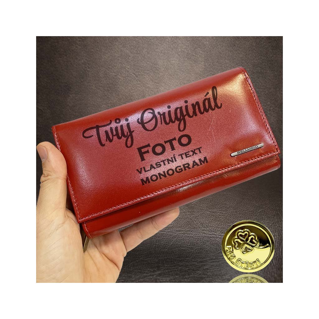 Dámská červená kožená peněženka BELLUGIO Leather s monogramem a vlastním textem + Akce - zlatá mince Pro štěstí ZDARMA