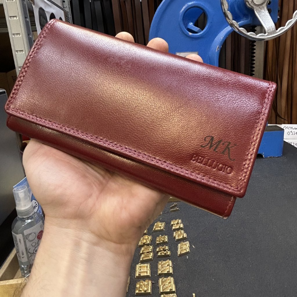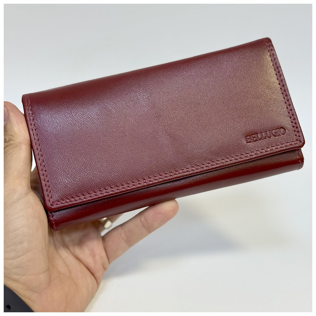Dámská červená kožená peněženka BELLUGIO Leather s monogramem a vlastním textem + Akce - zlatá mince Pro štěstí ZDARMA