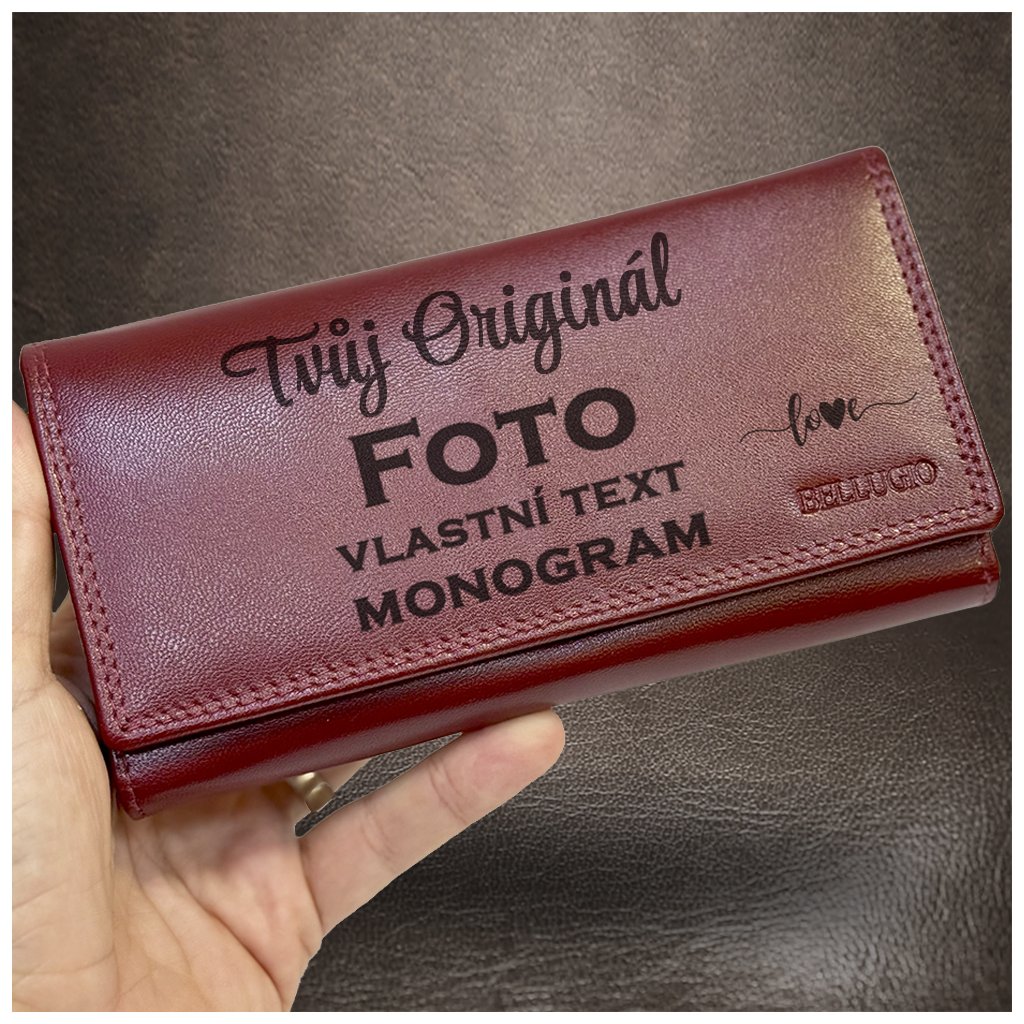 Exkluzivní dámská peněženka z prémiové kůže s možností personalizace monogramem, vlastním textem a fotografií – vyjímečný a osobní dárek.