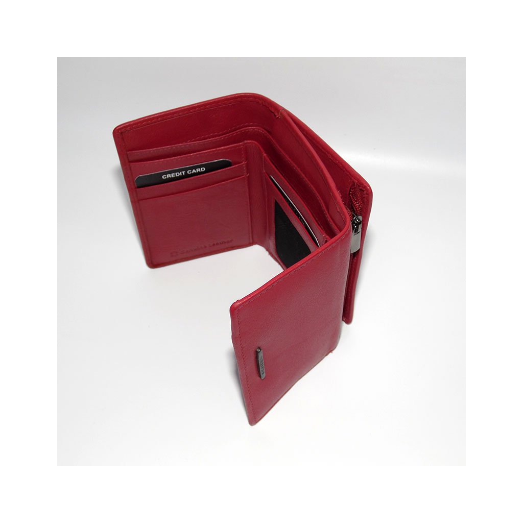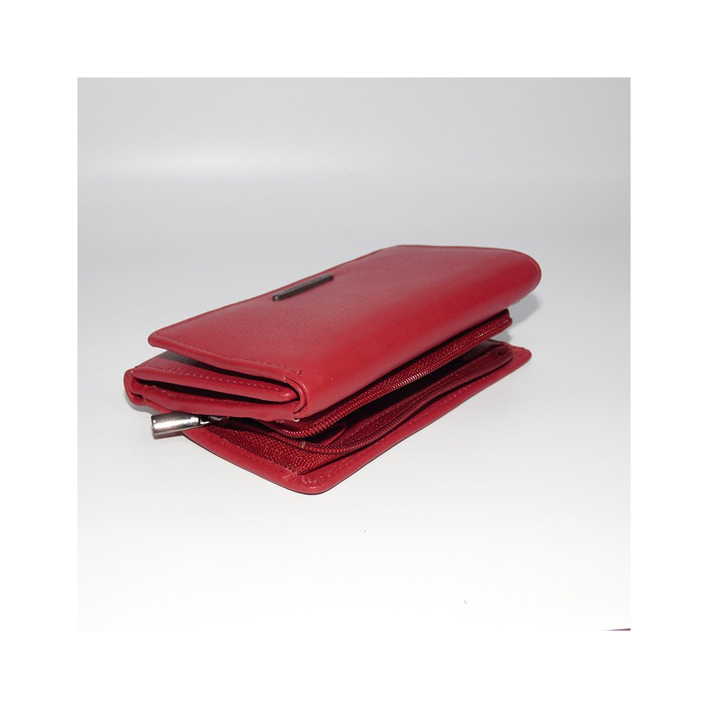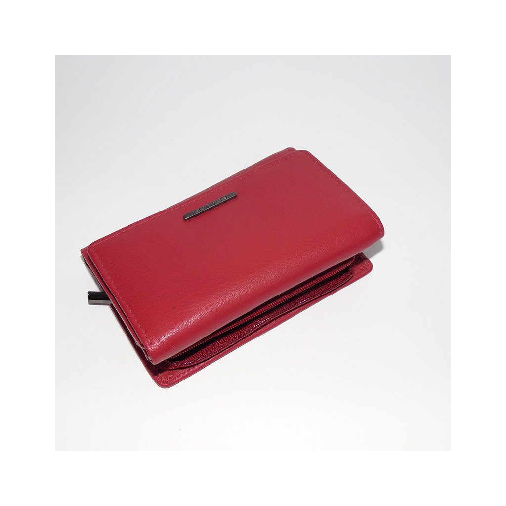 Stylová dámská peněženka BELLUGIO z pravé kůže v elegantním červeném odstínu vyniká kvalitním řemeslným zpracováním a jemným tónovým prošitím, které podtrhuje její luxusní vzhled. Po otevření na pevný druk je celý vnitřek peněženky ihned přístupný – najdete zde přehledný prostor pro platební a věrnostní karty, kapsy na bankovky, zadní kapsu na zip vhodnou na mince