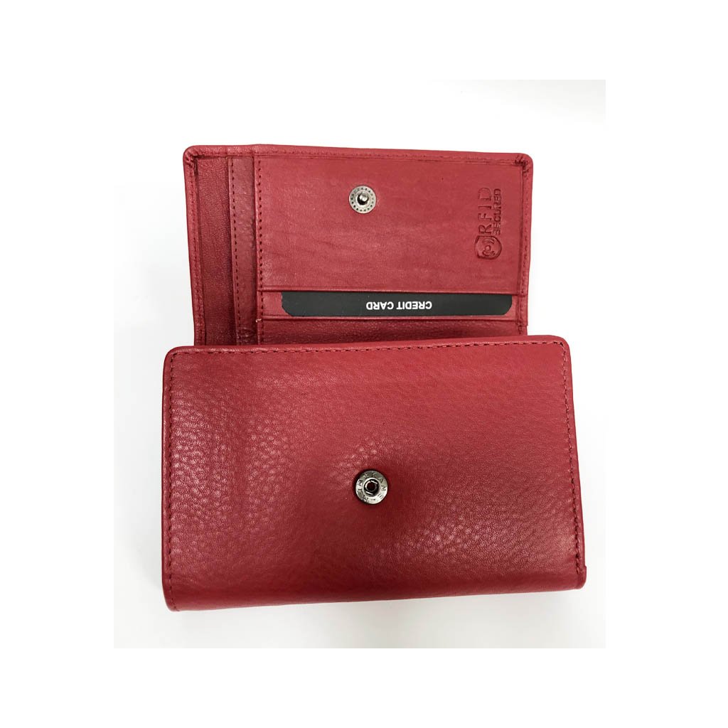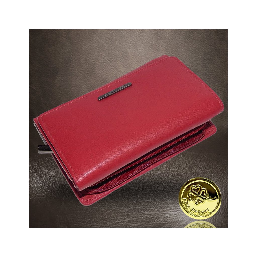 Dámská červená kožená peněženka BELLUGIO s monogramem a vlastním textem + Akce - zlatá mince Pro štěstí ZDARMA