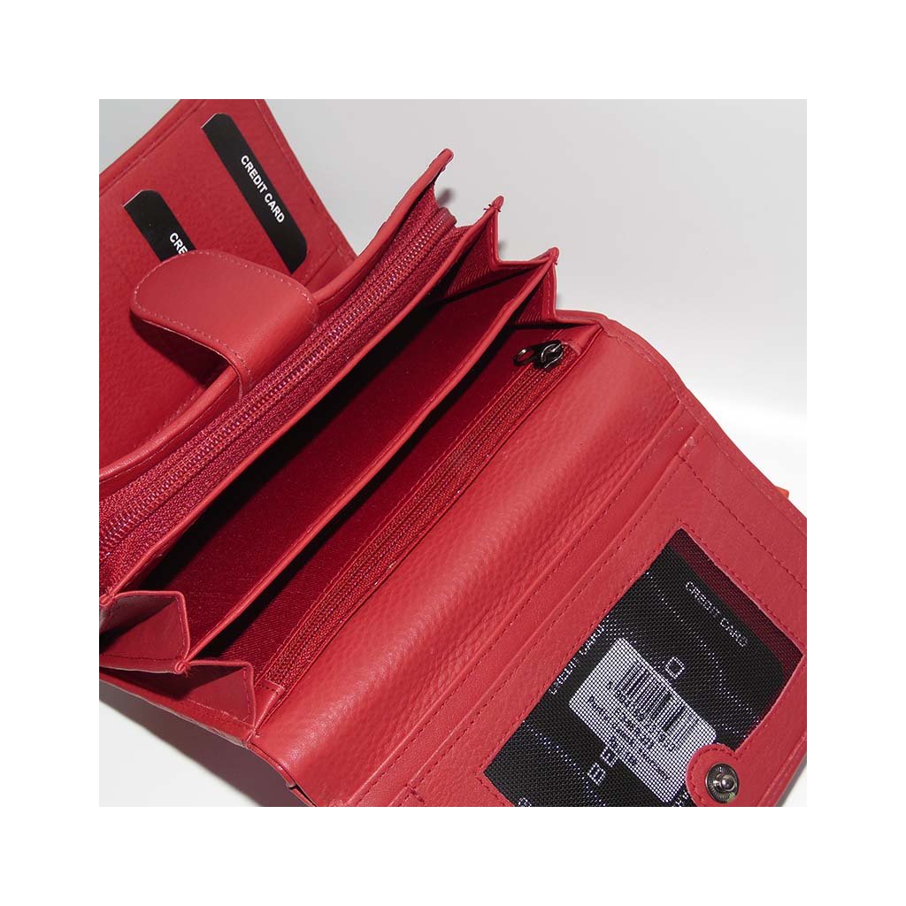 Stylová peněženka BELLUGIO z pravé kůže v intenzivním červeném odstínu, který je tradičně spojován s hojností a štěstím na peníze. Elegantní vzhled podtrhuje kvalitní provedení a praktické rozvržení. Po otevření (na pevný druk) nabízí prostor pro karty a doklady, kapsy na bankovky, zadní kapsu na zip nebo druk vhodnou pro drobné mince