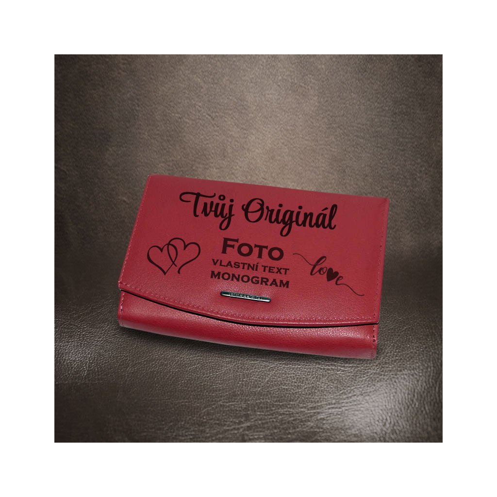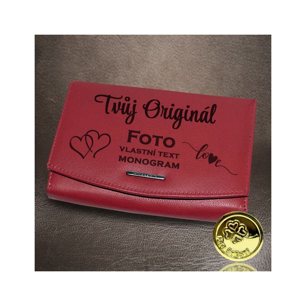 Dámská červená kožená peněženka BELLUGIO s monogramem a vlastním textem + Akce - zlatá mince Pro štěstí ZDARMA