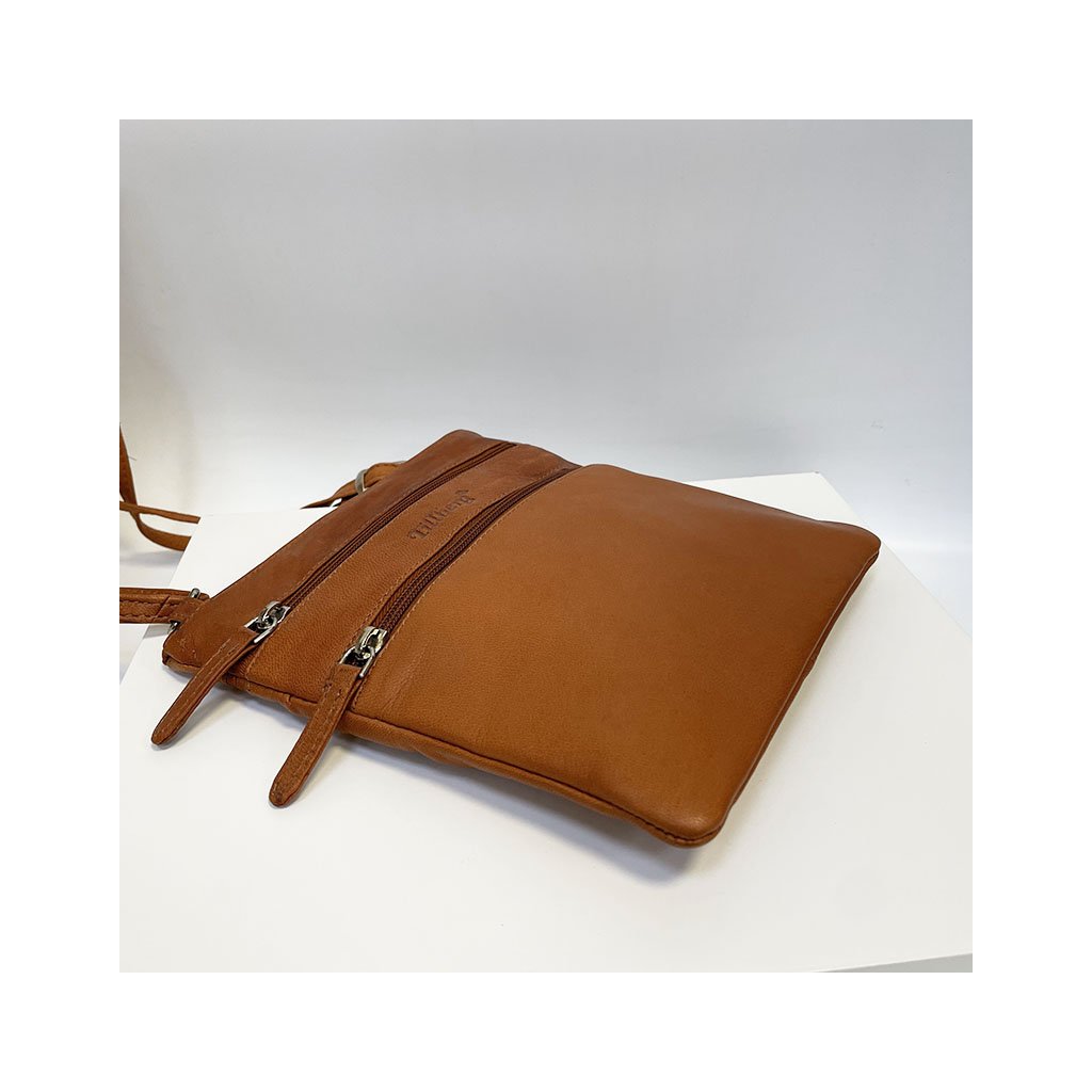 Crossbody kožená messenger taška je v zajímavém hnědém odstínu. Přední a zadní kapsy na zip. Celá taška má hlavní kapsu na zip, je menších rozměrů, ideální na cestování, kdy do ní dáte s přehledem vše nezbytné. Součástí je nastavitelný popruh.
