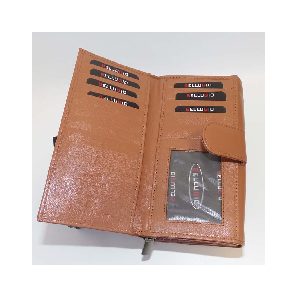 Dámská hnědá CAMEL kožená peněženka BELLUGIO Leather s vlastním textem nebo monogramem