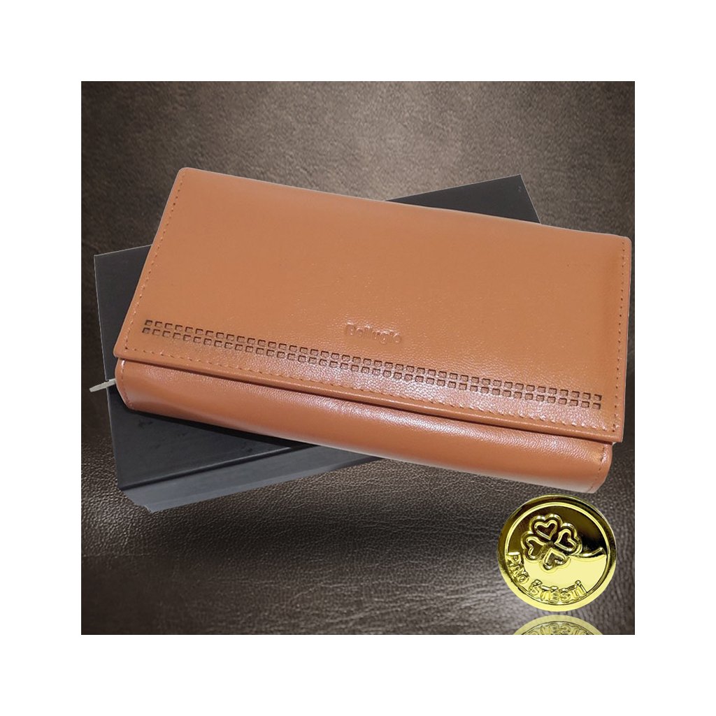 Dámská hnědá kožená peněženka BELLUGIO Leather s monogramem a vlastním textem + Akce - zlatá mince Pro štěstí ZDARMA