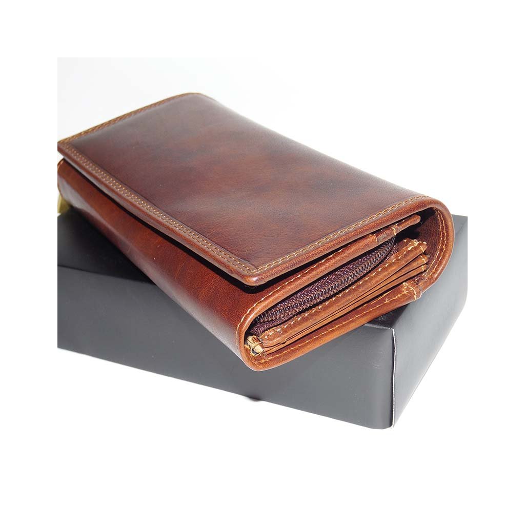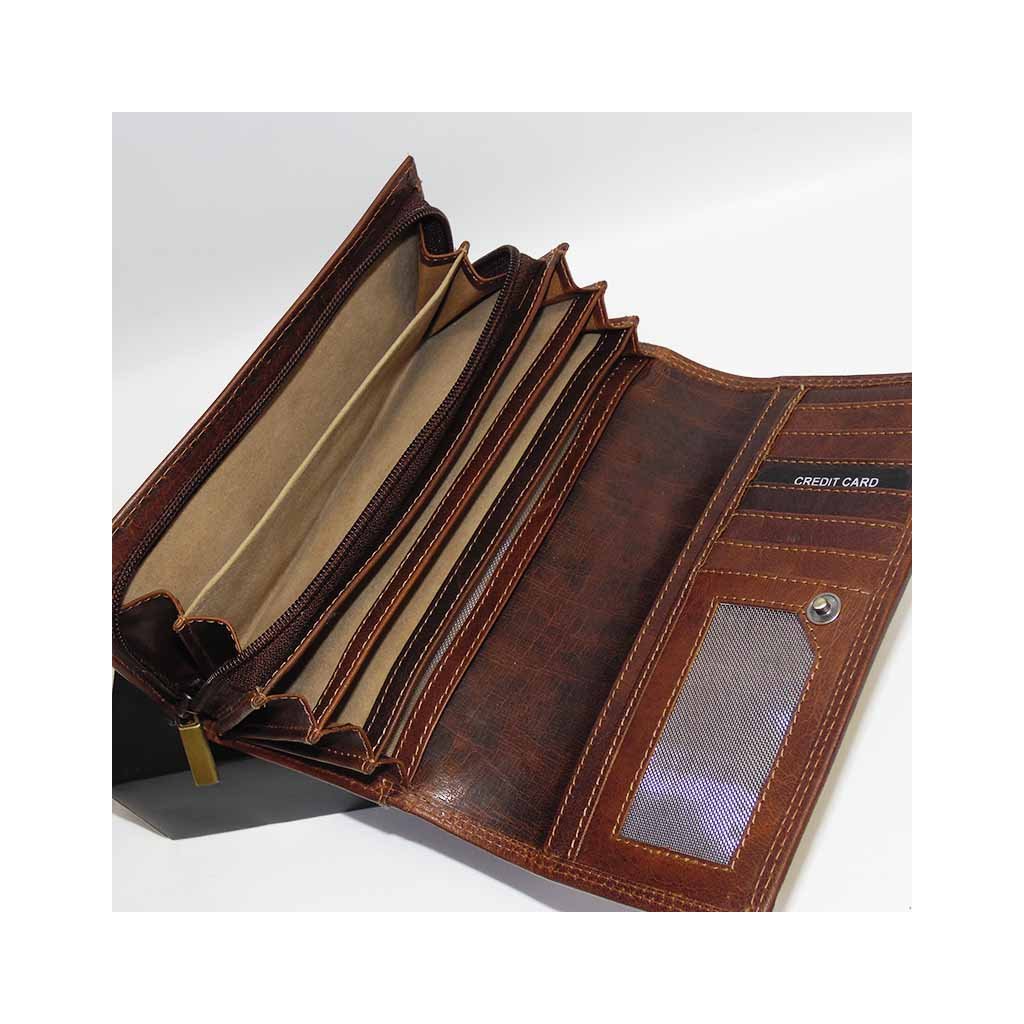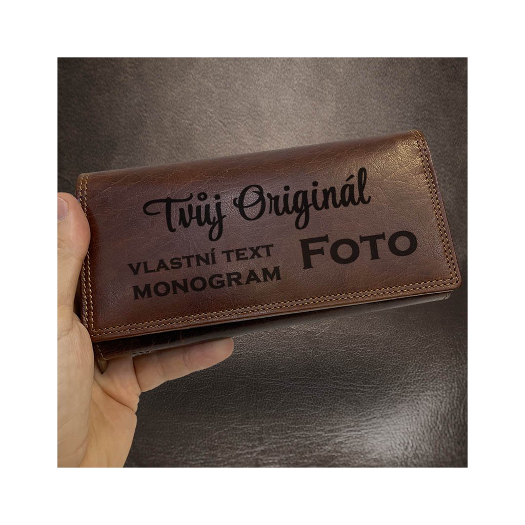 Dámská hnědá kožená peněženka EXCLUSIVE Leather s monogramem a vlastním textem + Akce - zlatá mince Pro štěstí ZDARMA