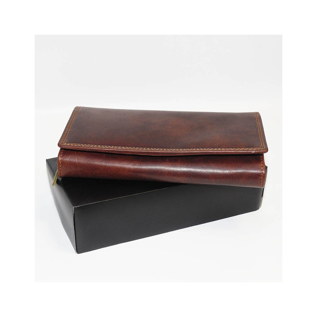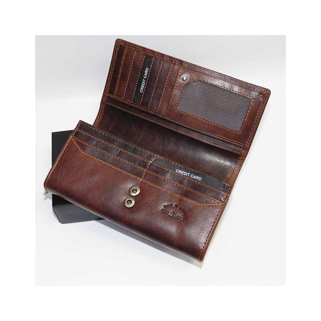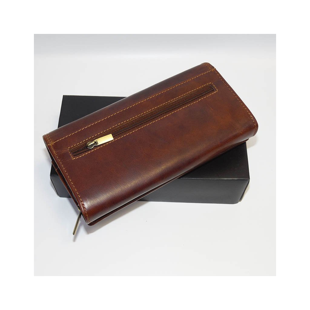 Dámská hnědá kožená peněženka EXCLUSIVE Leather s monogramem a vlastním textem + Akce - zlatá mince Pro štěstí ZDARMA