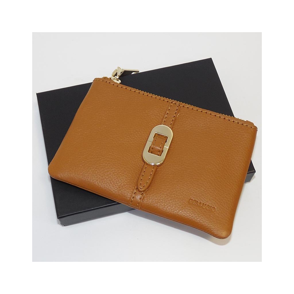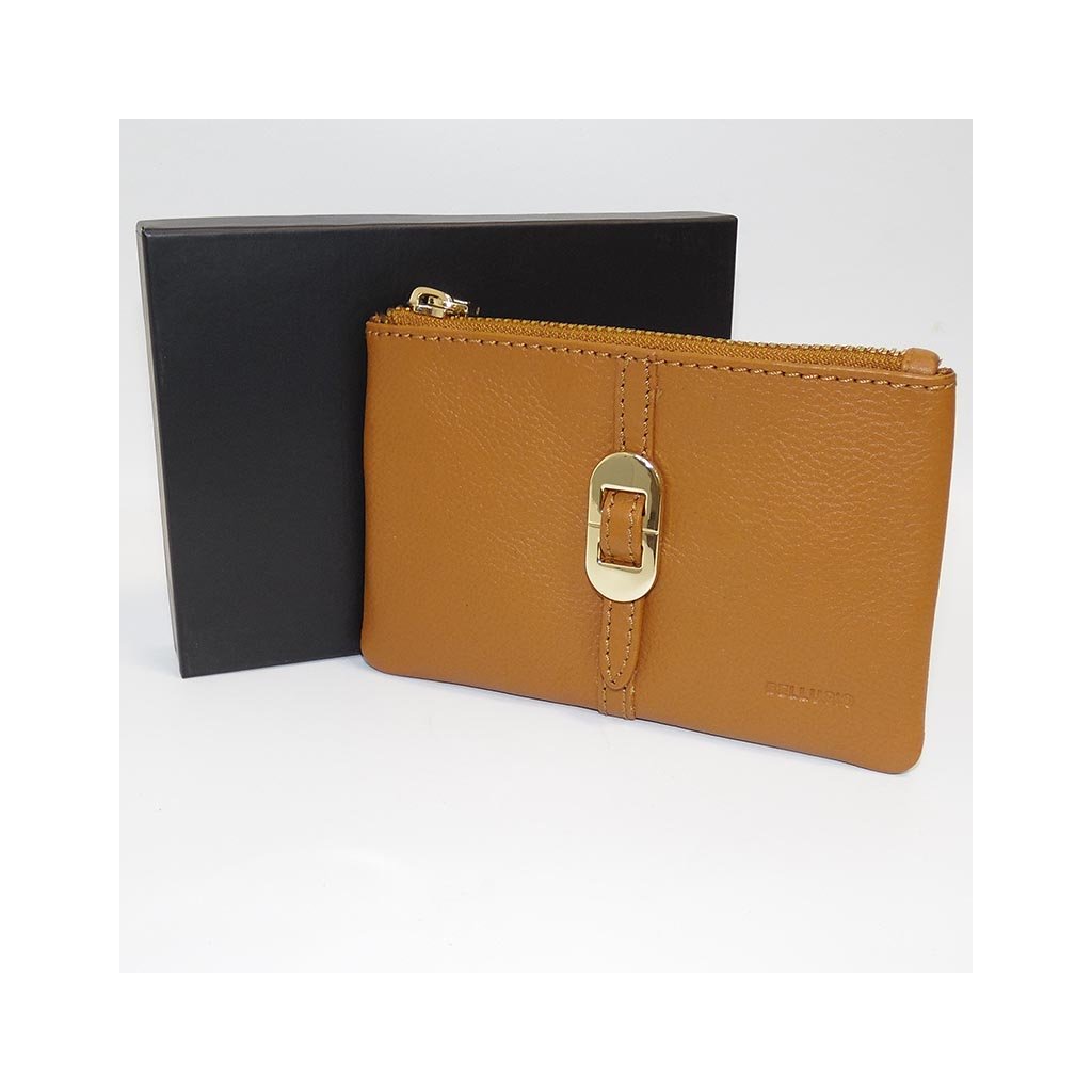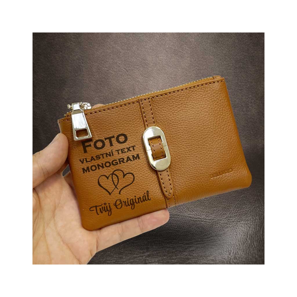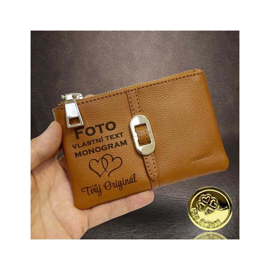 Dámská hnědá kožená peněženka na zip BELLUGIO Leather s monogramem a vlastním textem + Akce - zlatá mince Pro štěstí ZDARMA