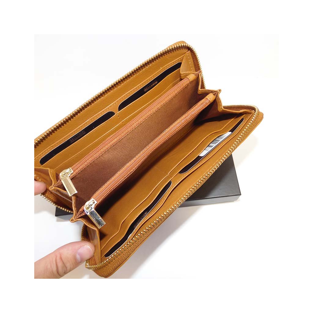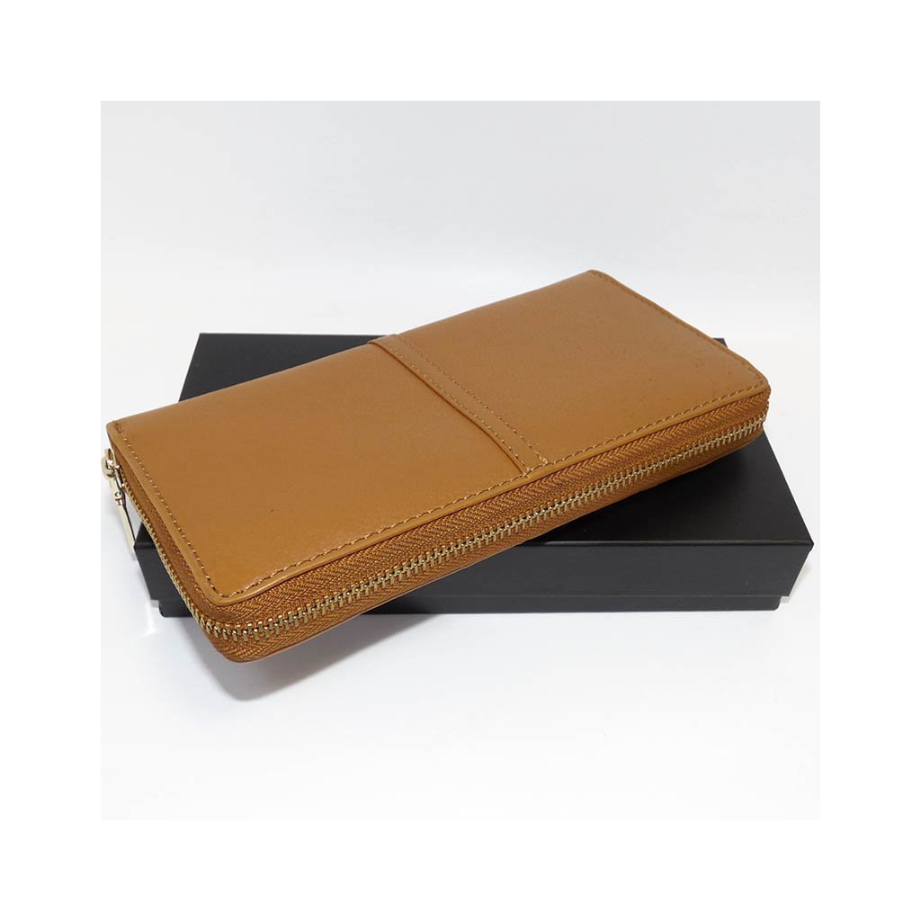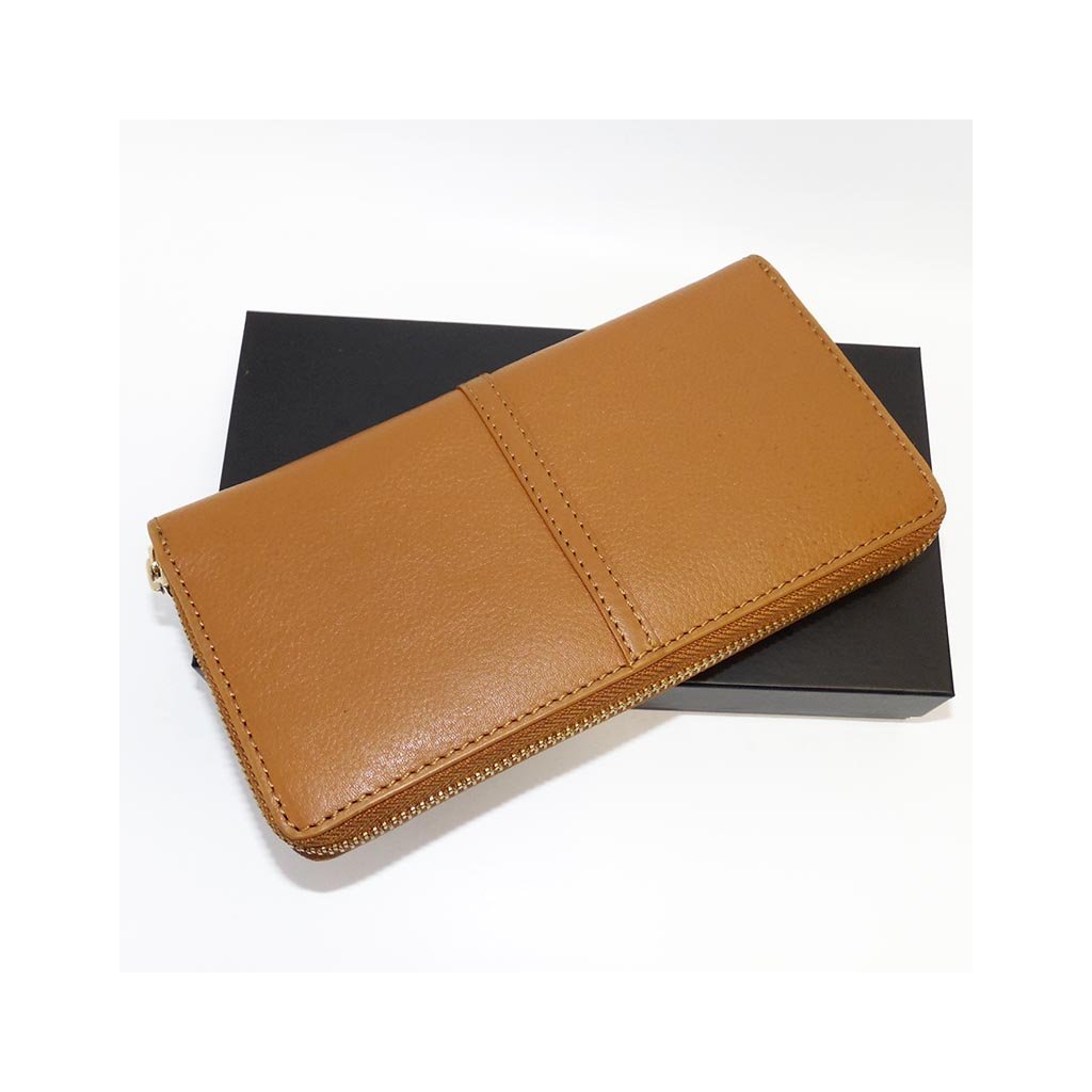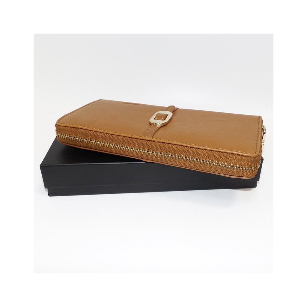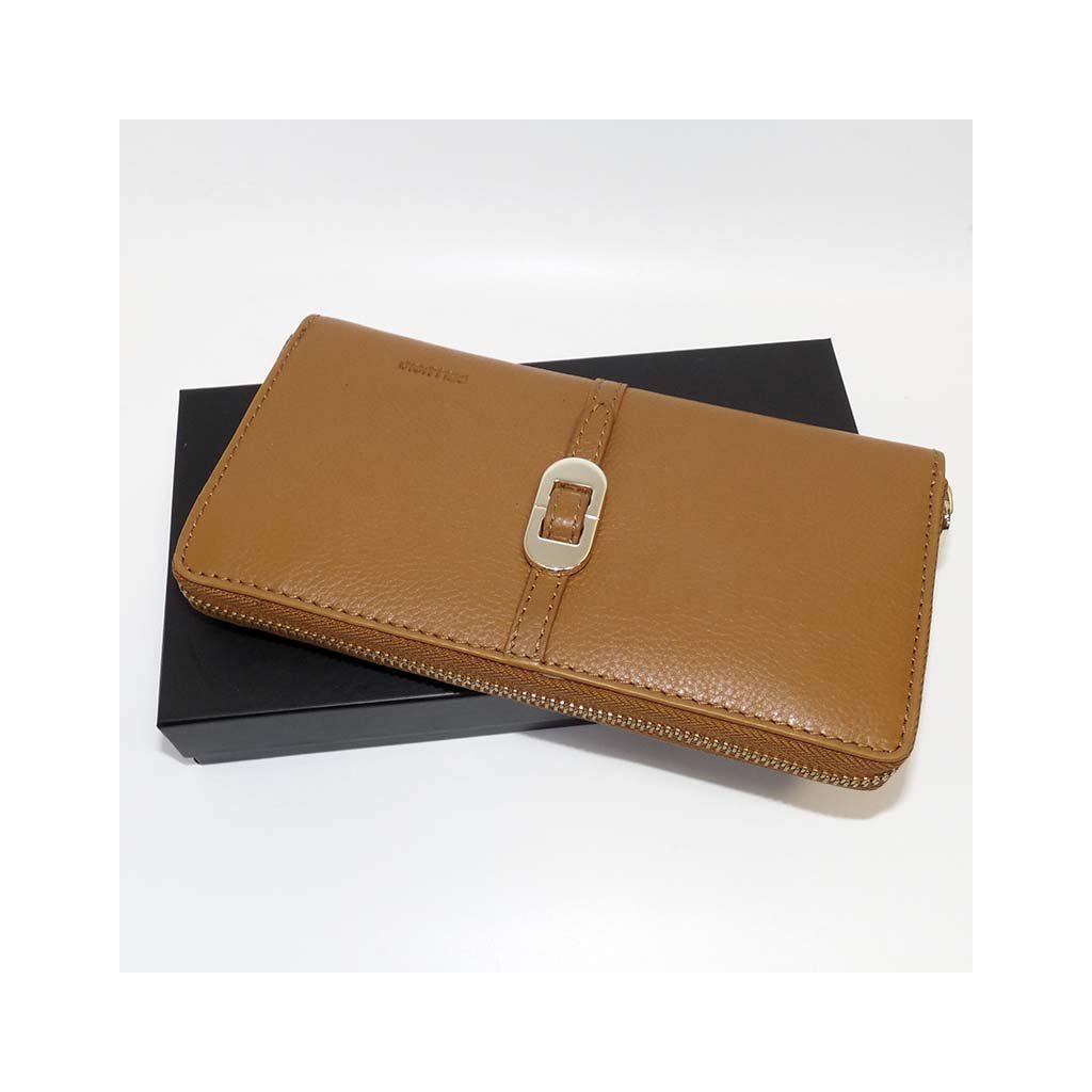 Dámská hnědá kožená peněženka na zip BELLUGIO Leather s monogramem a vlastním textem + Akce - zlatá mince Pro štěstí ZDARMA