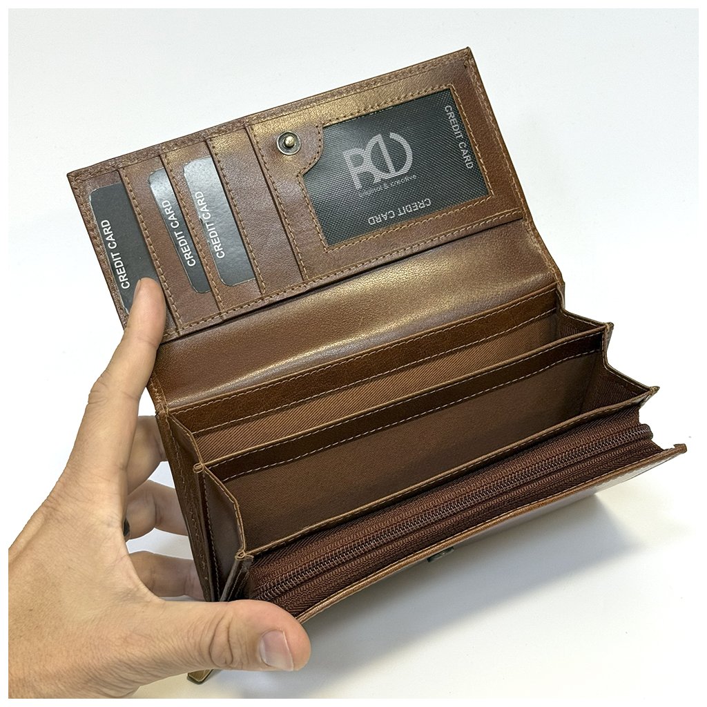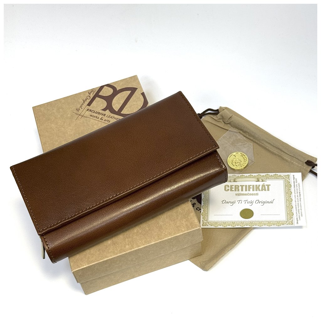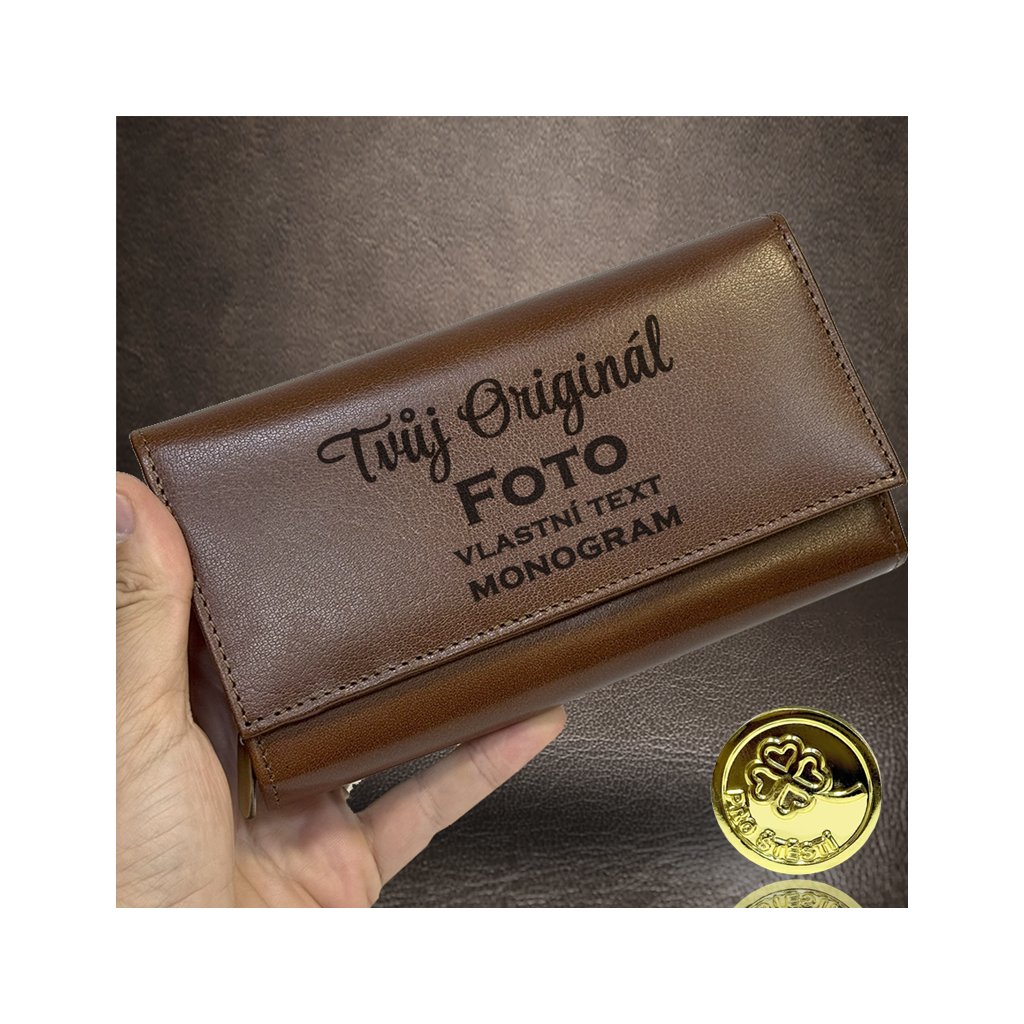 Dámská hnědá kožená peněženka ROYAL LEATHER RFID s monogramem, vlastním textem nebo fotkou + Akce - zlatá mince Pro štěstí ZDARMA