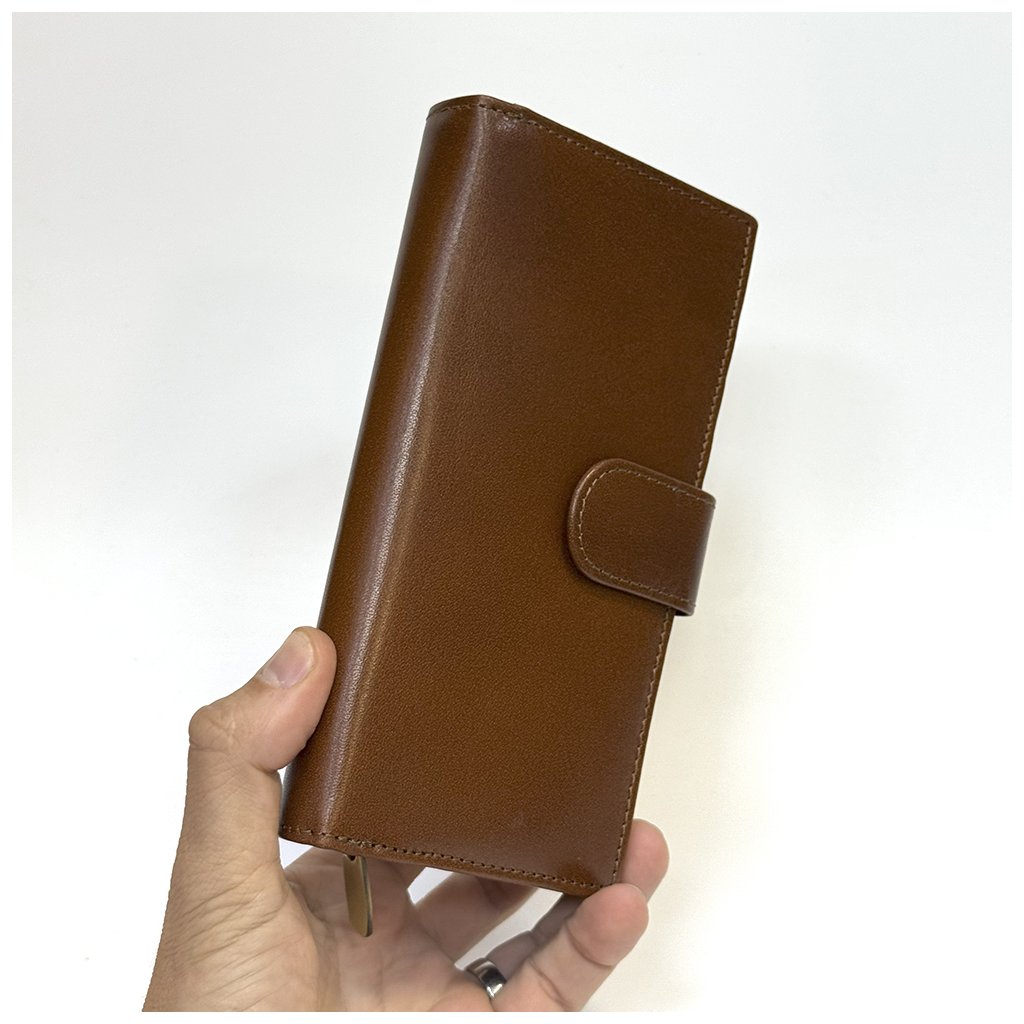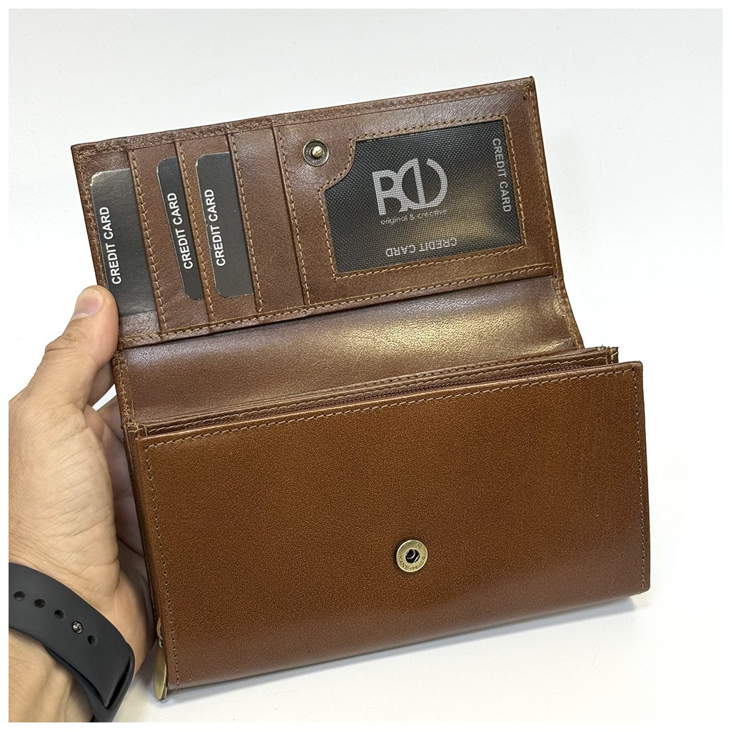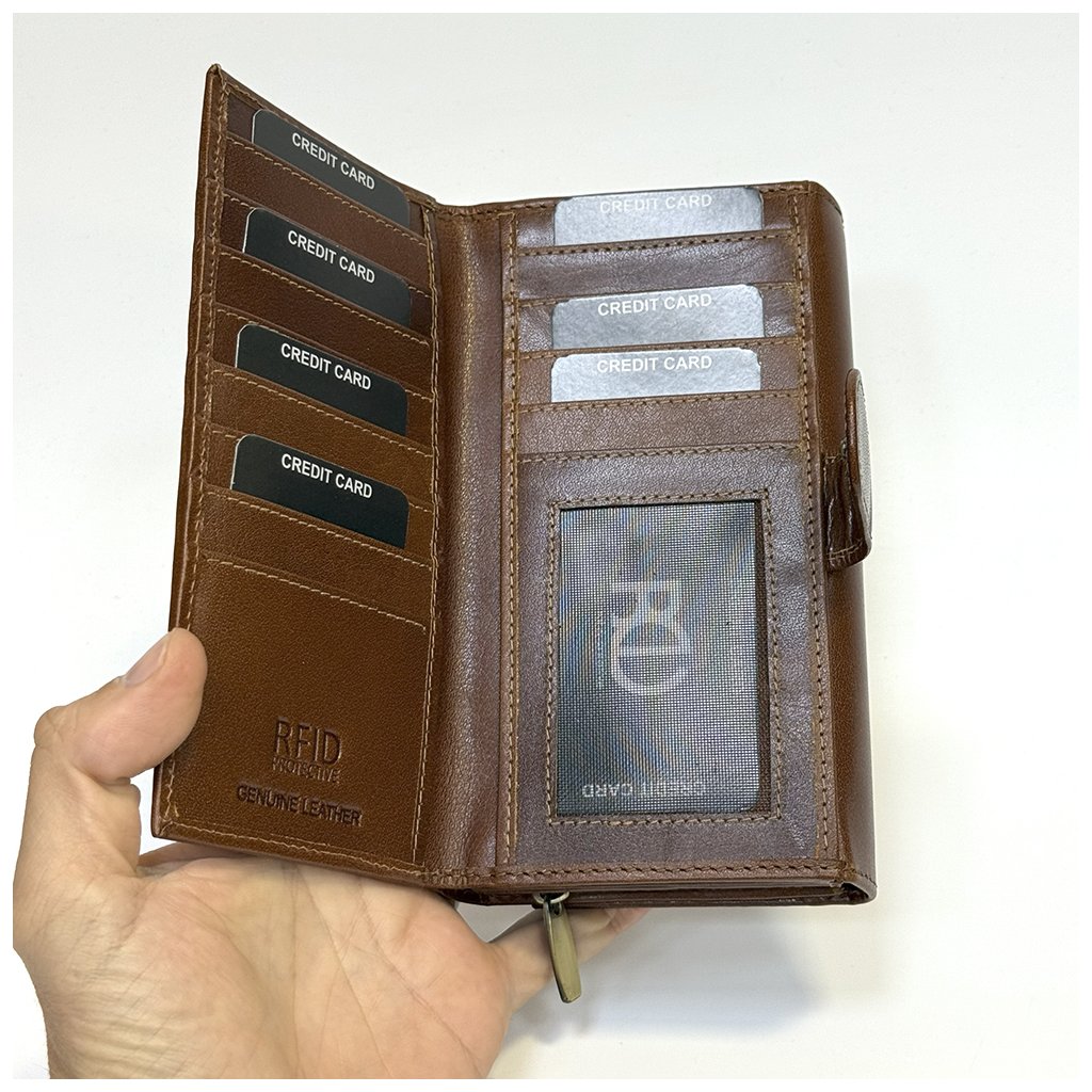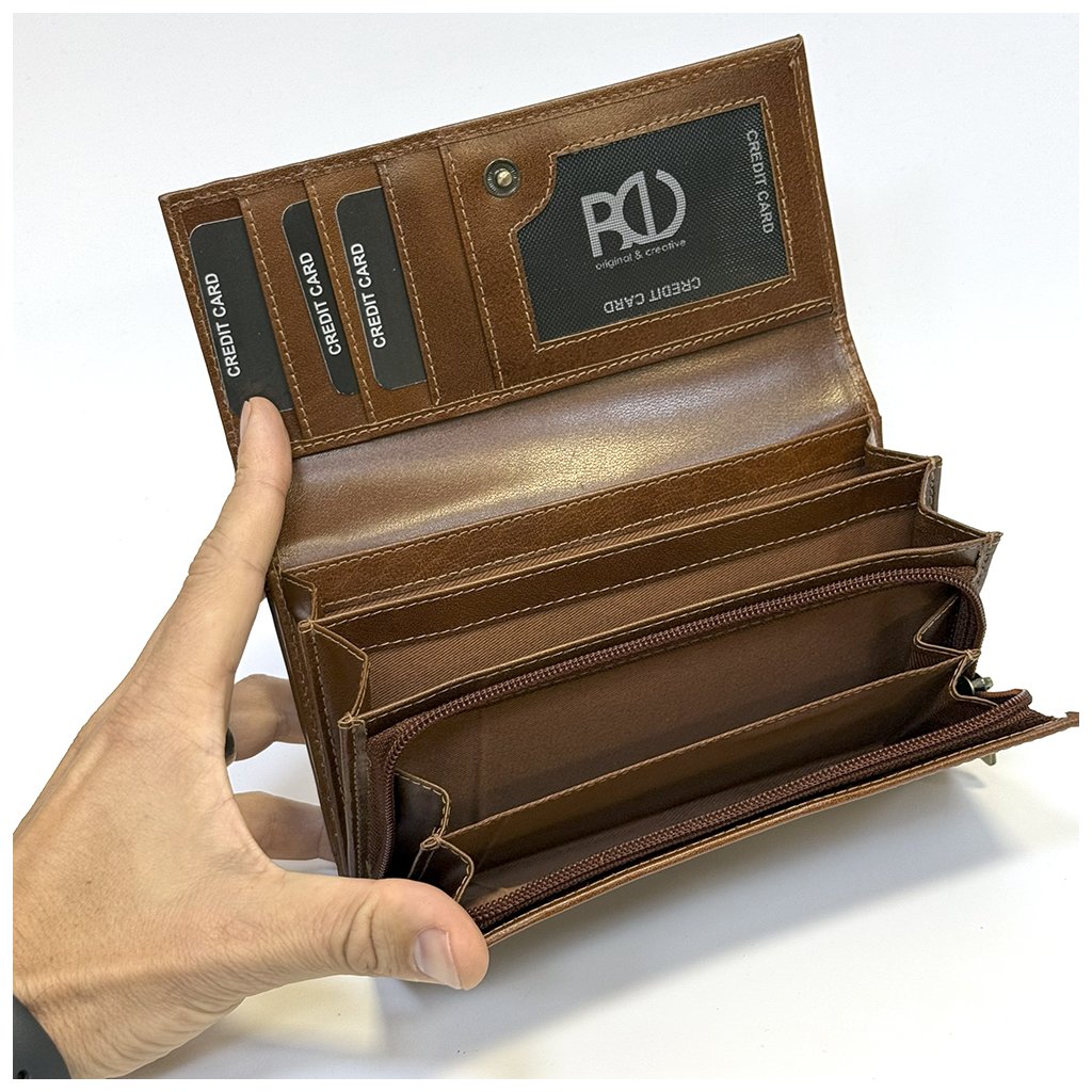 Dámská hnědá kožená peněženka ROYAL LEATHER RFID s monogramem, vlastním textem nebo fotkou + Akce - zlatá mince Pro štěstí ZDARMA