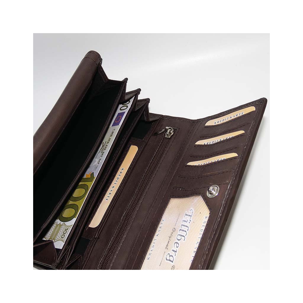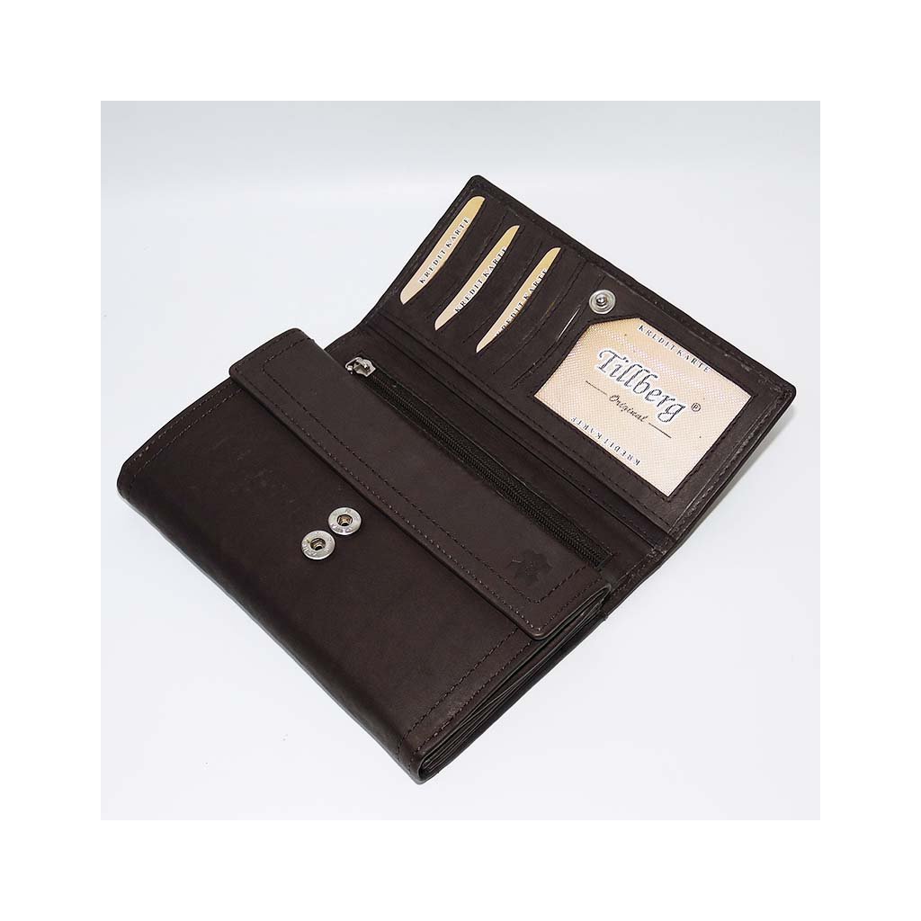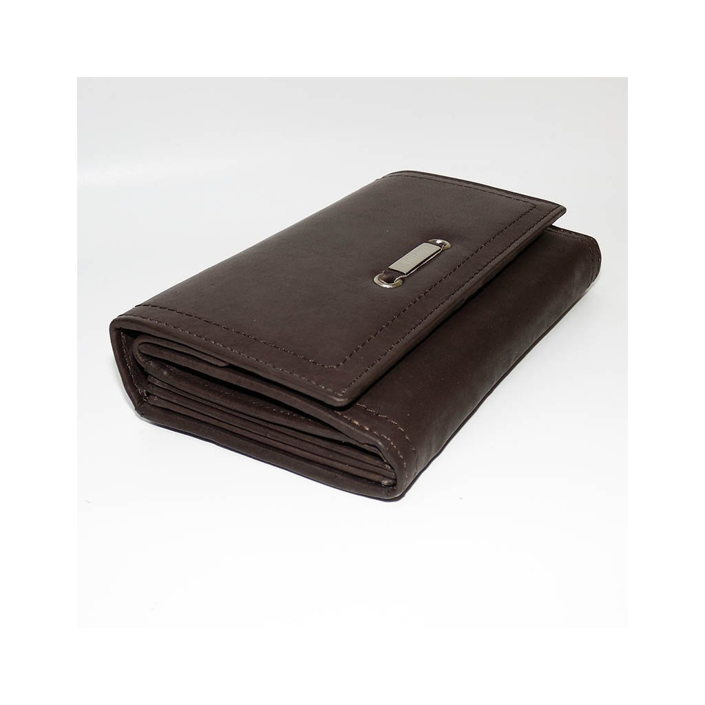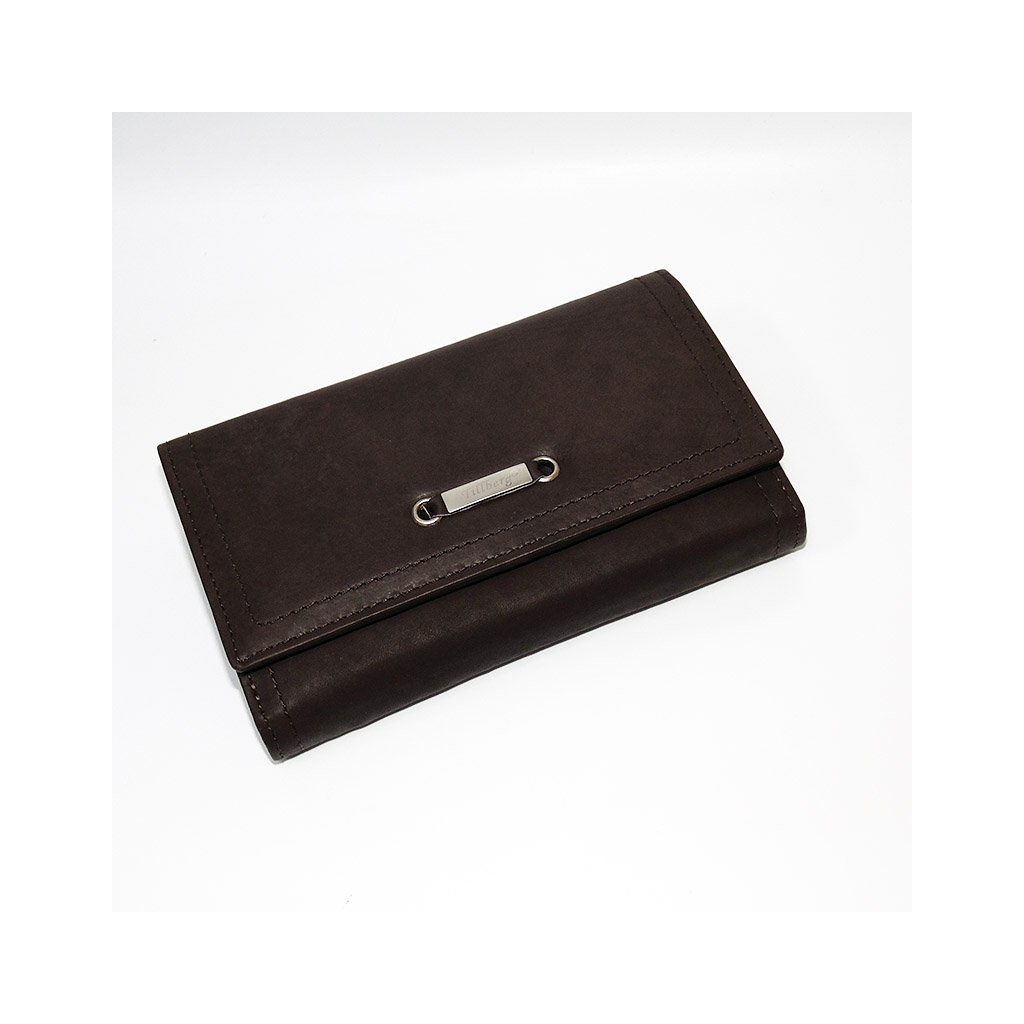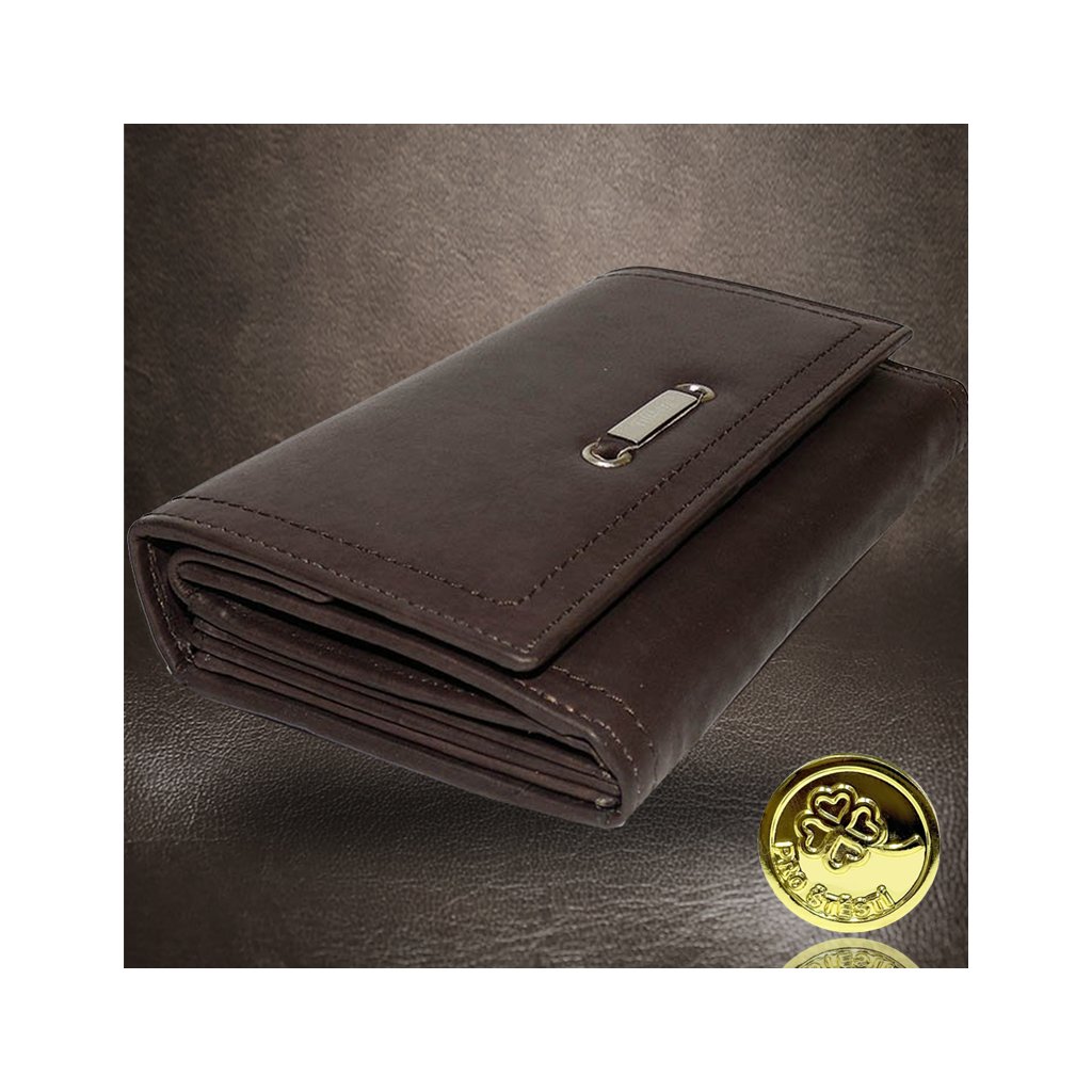 Dámská hnědá kožená peněženka TILLBERG LUXURY s monogramem a vlastním textem + Akce - zlatá mince Pro štěstí ZDARMA