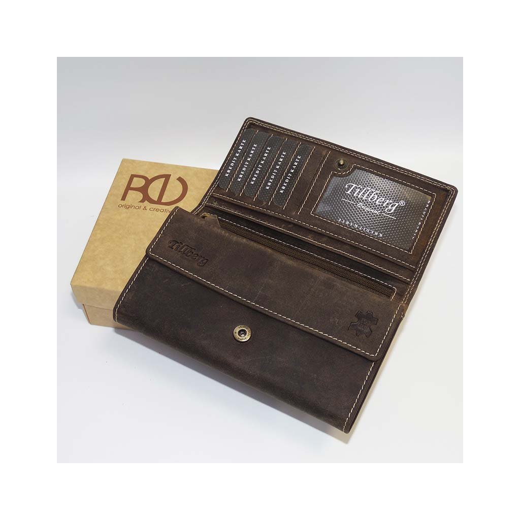 Dámská hnědá kožená peněženka TILLBERG vyniká svou naturální barvou a poctivým zpracováním z pravé kůže. Praktický design doplníte vlastním textem, monogramem nebo fotografií, čímž vznikne osobitý kousek, který potěší nejen vás, ale i každého obdarovaného.