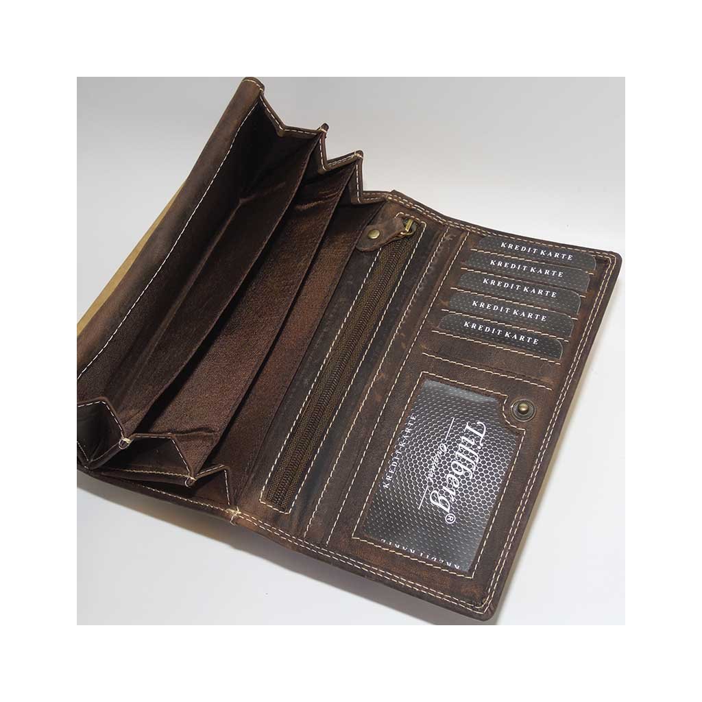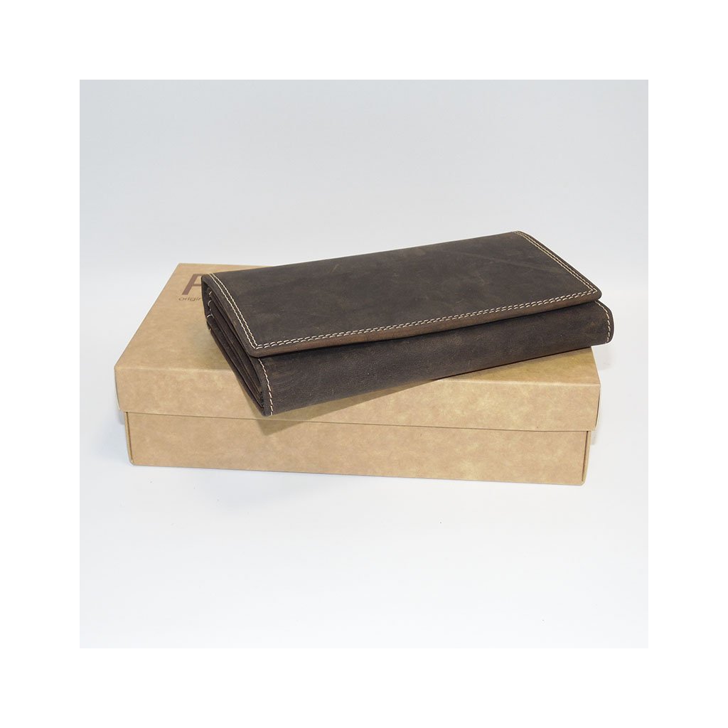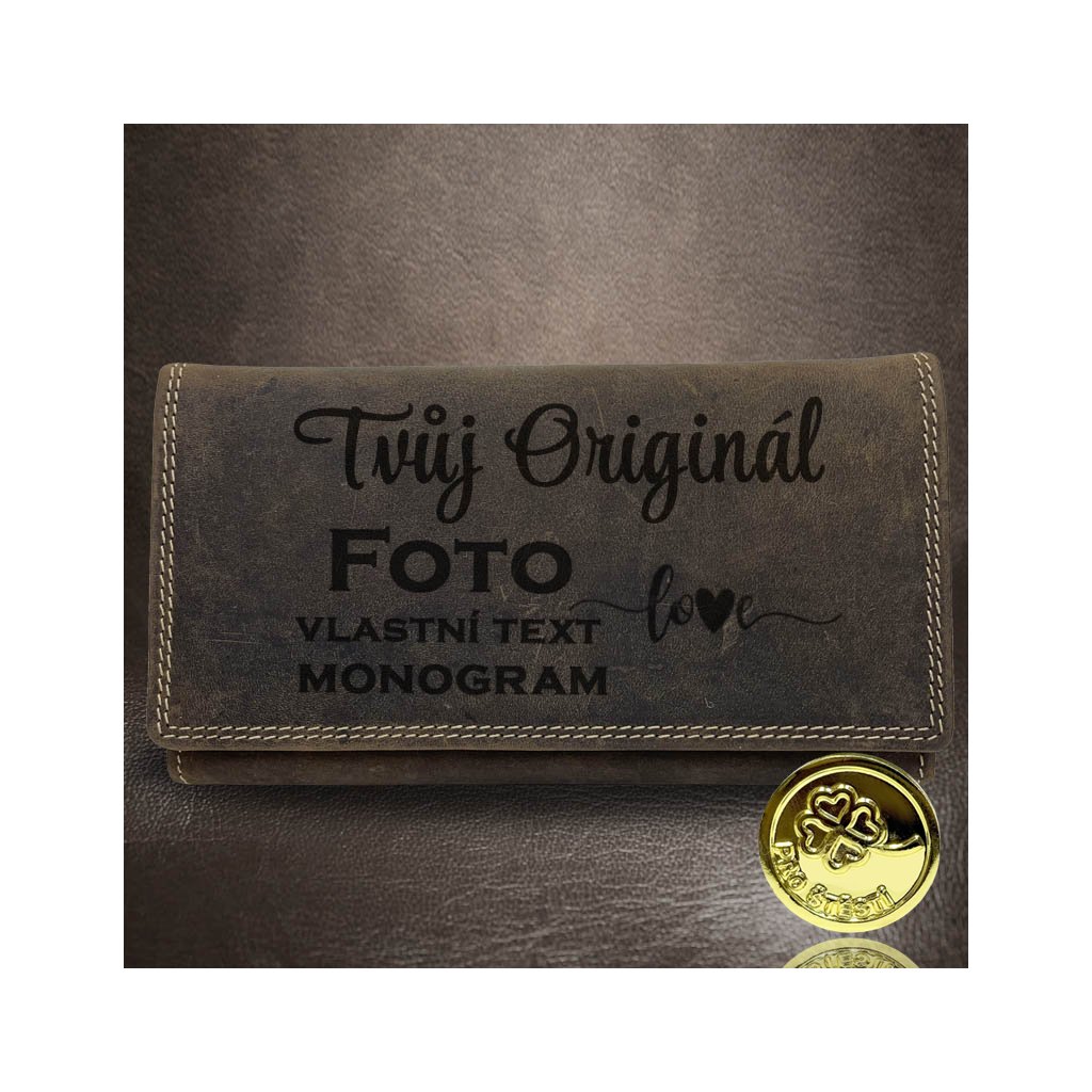 Dámská hnědá kožená peněženka TILLBERG s monogramem a vlastním textem + Akce - zlatá mince Pro štěstí ZDARMA