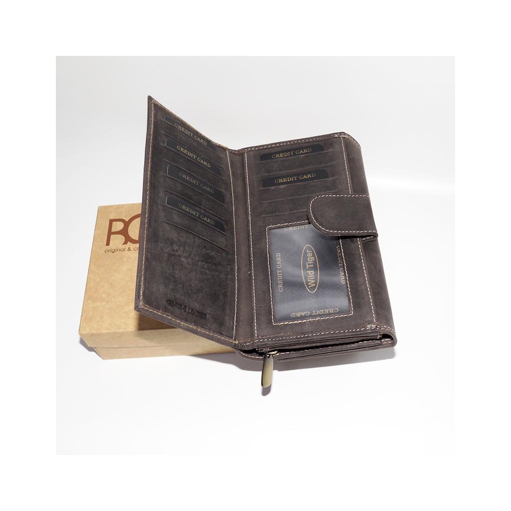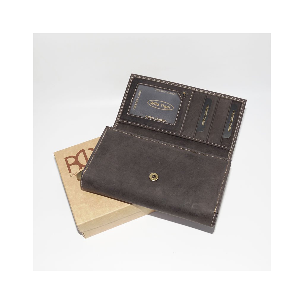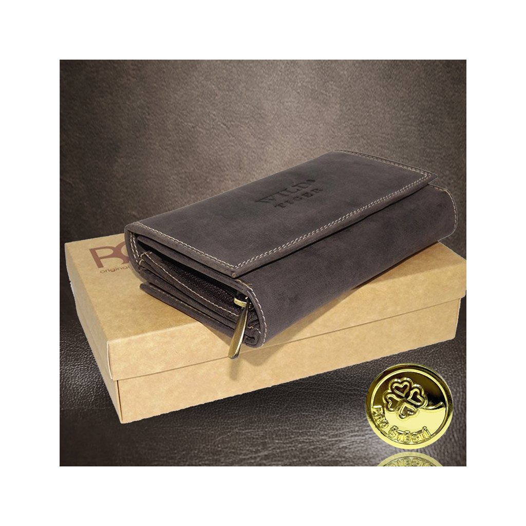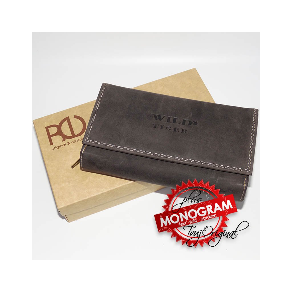 Dámská hnědá kožená peněženka WILD Leather s monogramem (ražba) + Akce - zlatá mince Pro štěstí ZDARMA