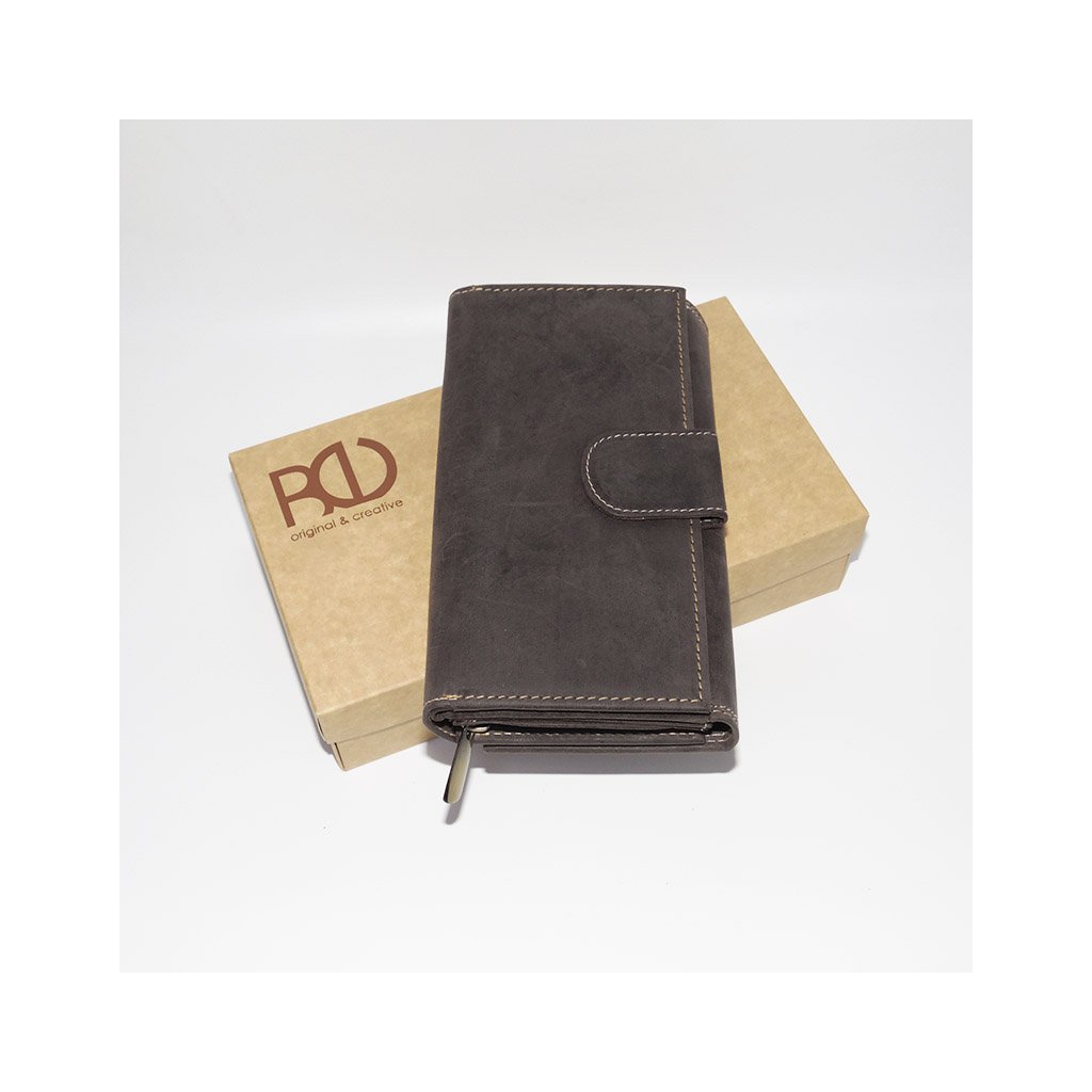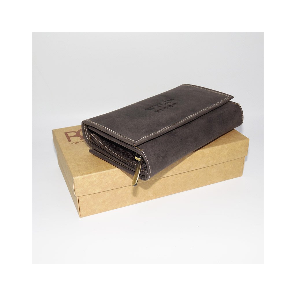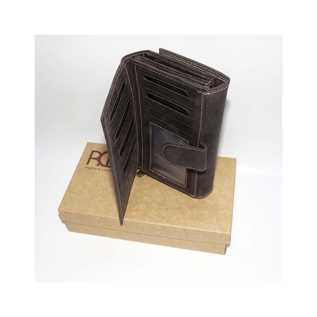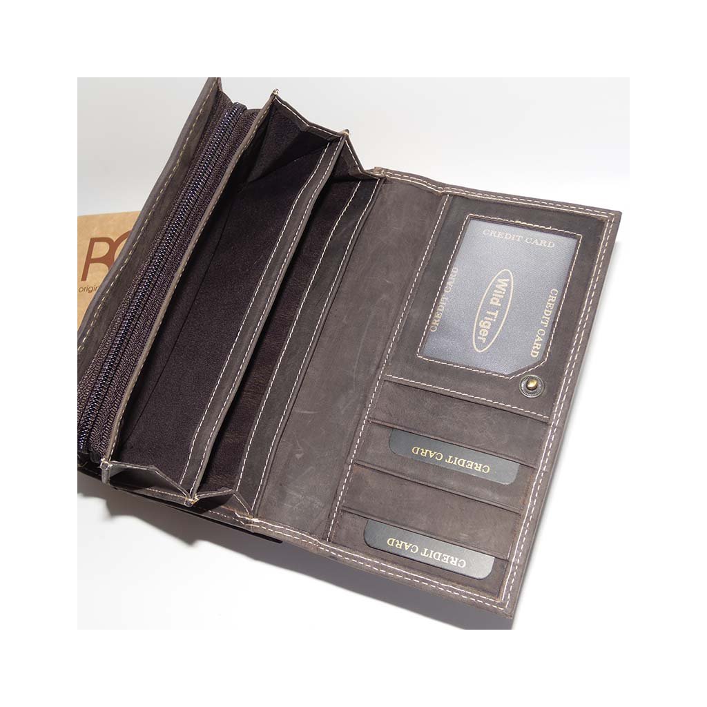 Dámská hnědá kožená peněženka WILD Leather s monogramem (ražba) + Akce - zlatá mince Pro štěstí ZDARMA