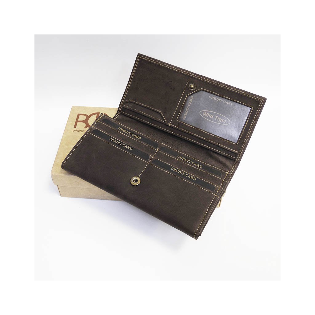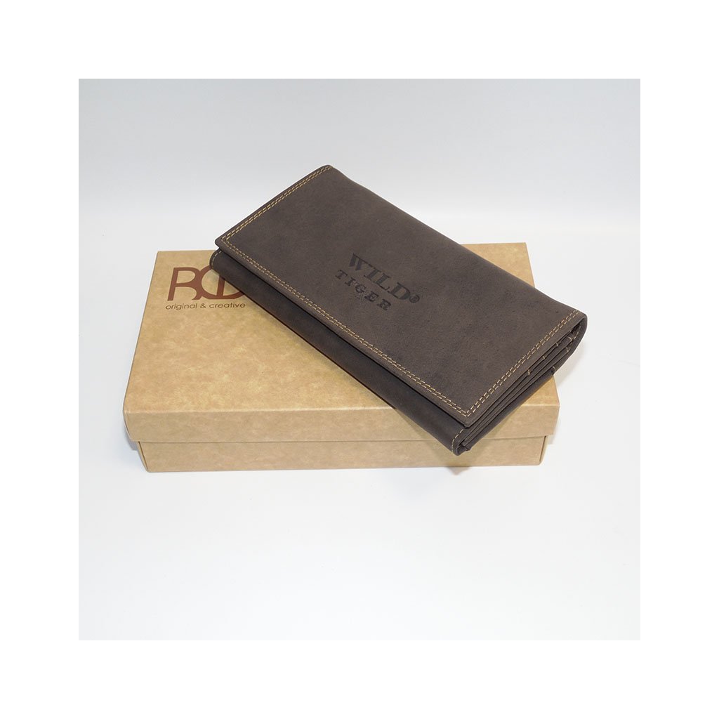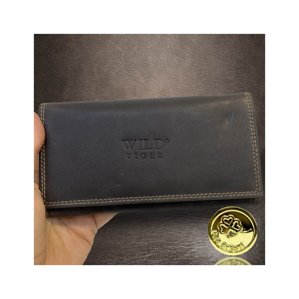 Dámská hnědá kožená peněženka WILD Leather s monogramem (ražba) + Akce - zlatá mince Pro štěstí ZDARMA