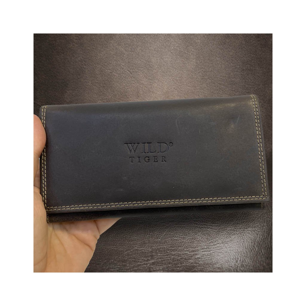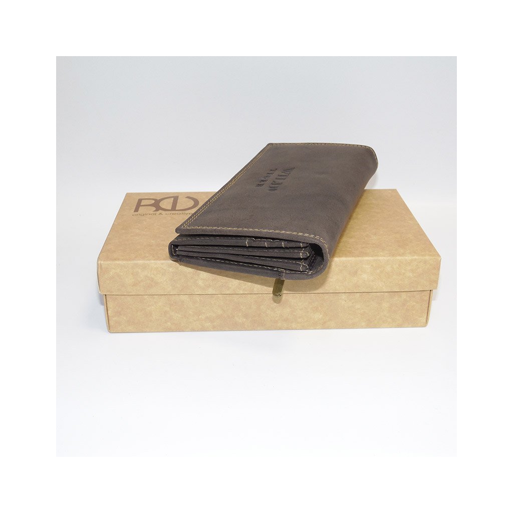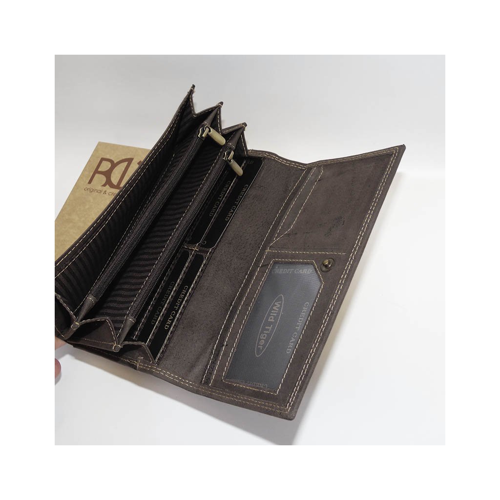 Dámská hnědá kožená peněženka WILD Leather s monogramem (ražba) + Akce - zlatá mince Pro štěstí ZDARMA